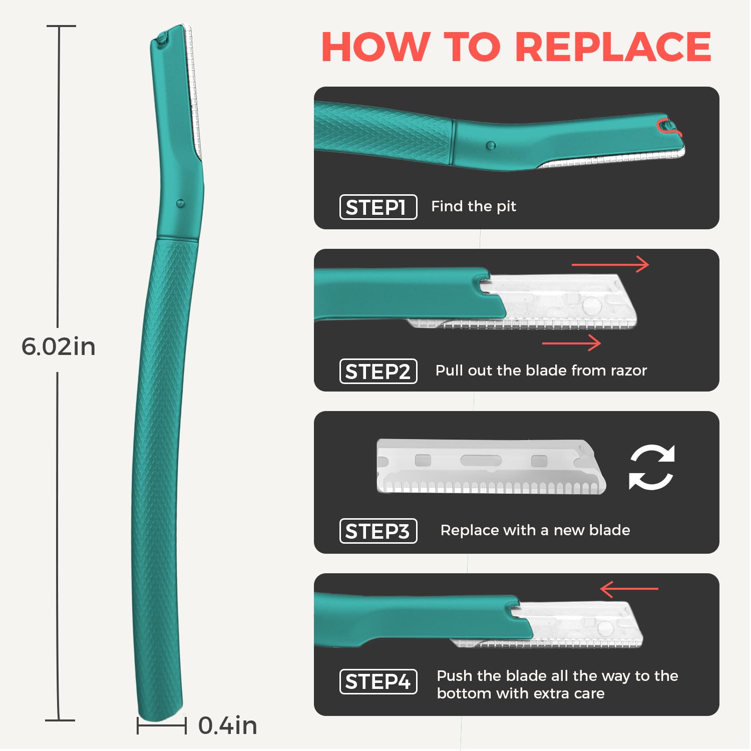 - BEST AFTER-SALE SERVICE:You will get six reliable facial razors blades straight out of the package. Faical razor comes with a cover to prevent blades from being exposed, which is safe during use. If for any reason, you are not happy with our eyebrow razor, we are giving you a replacement quickly.