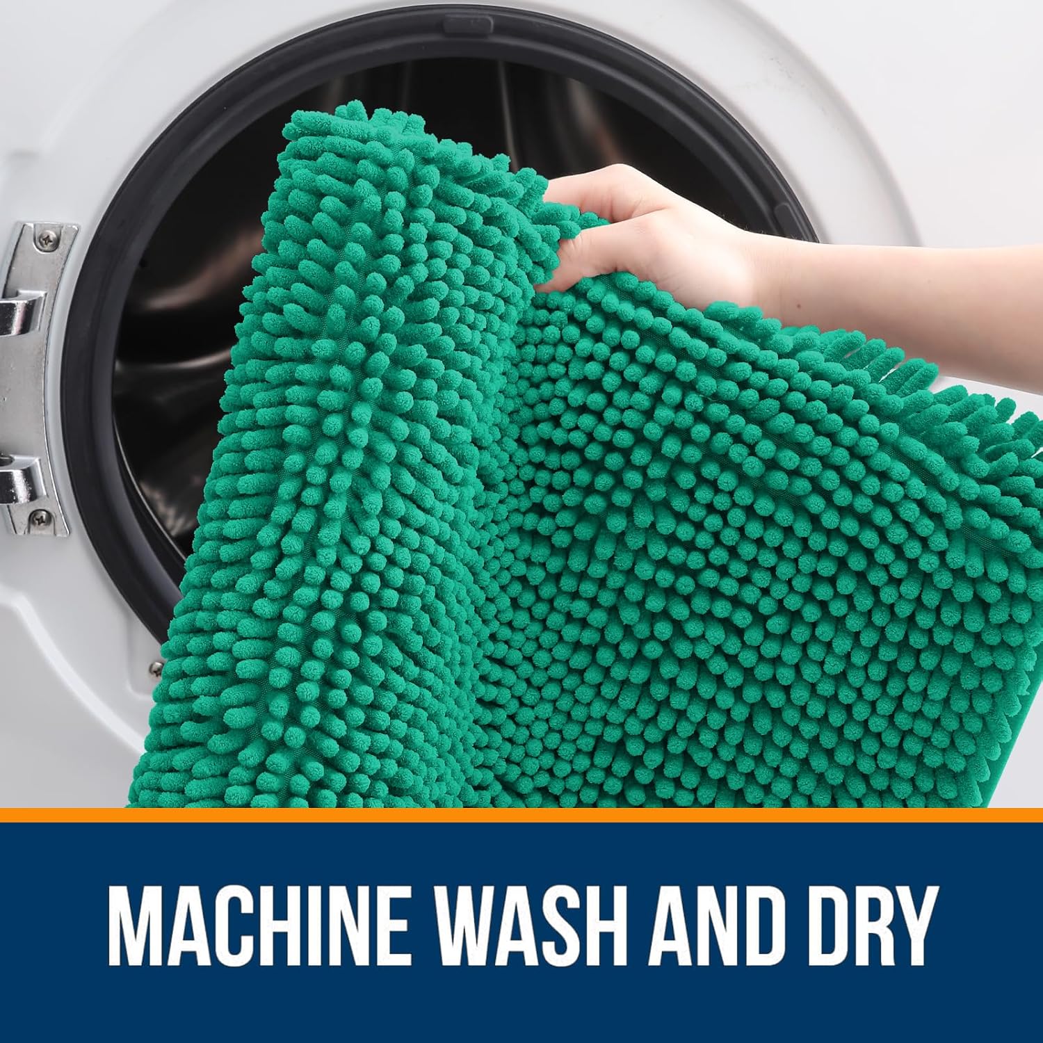 OLANLY Bathroom Rugs 44x24, Extra Soft Absorbent Chenille Bath Rugs, Rubber Backing Quick Dry, Machine Washable Bath Mats for Bathroom Floor, Tub and Shower, Home Decor Accessories, Emerald