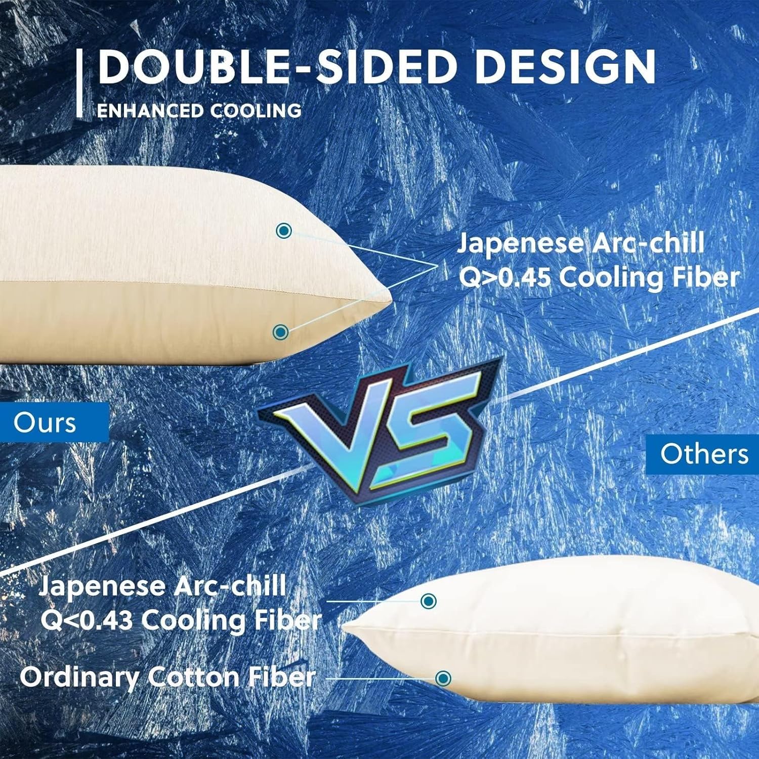 - ENHANCED COOLING - Different from other pillowcases with cooling fiber on the front + ordinary cotton on the back, our cooling pillow covers with double side enhanced cooling design. Both sides use premium cooling fibers and both side Q-Max>0.4. (Surface: 60% mica nyIon + 40% poIyethyIene, Back: 100% mica nyIon). Meanwhile cause we use larger size dense weave cooling fabric, the cooling feeling is greatly enhanced