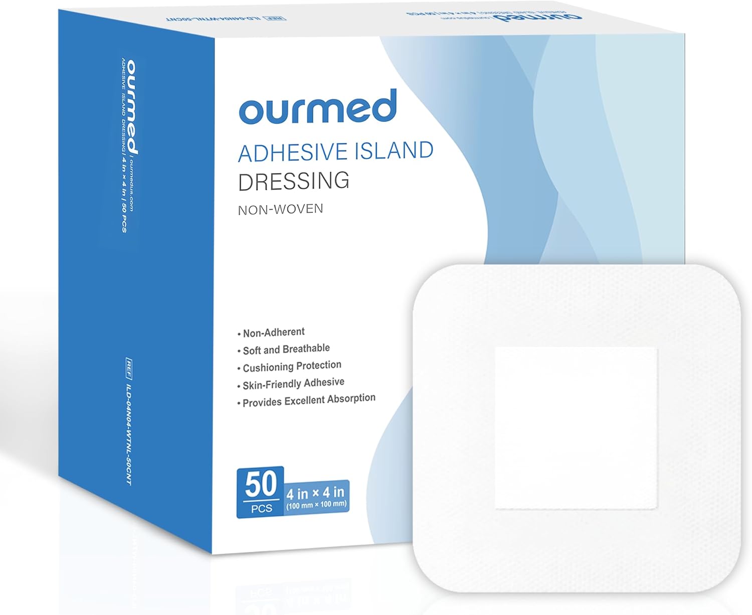 Island Dressing Bordered Gauze 4"x 4"(2"x 2" Absorbent Pad), Pack of 50, Self-Adhesive Sterile Dressing with Highly Absorbent, Latex& Rubber- Free, for Cuts and Scratches