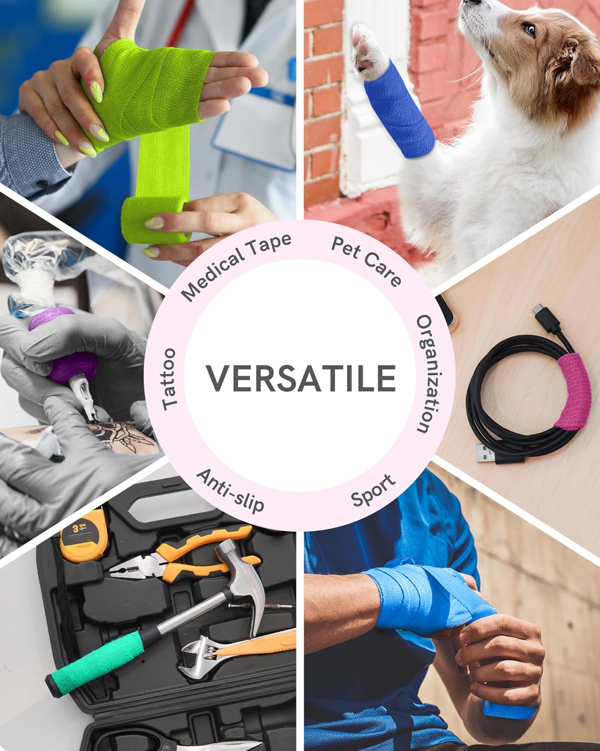 FriCARE Self Adhesive Bandage Wrap, Medical Tape in First Aid Kit, Cohesive Bandages for Wounds Sport Vet, 2 Inches X 5 Yards 16 Rolls, Glowing