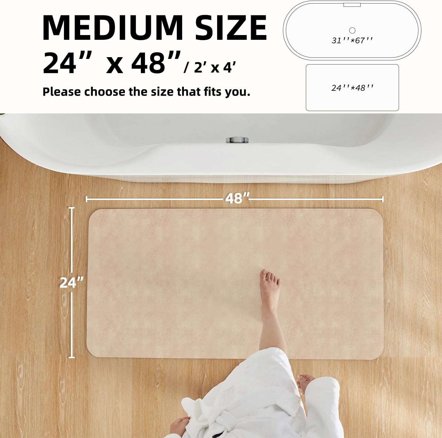 Bathroom Mat Quick Dry, Bathroom Rugs Non Slip Washable Thin Absorbent Bath Mat Fits Under Door Bathroom Floor Mat Perfect for Bath, Shower, or Sink 24"x48" Beige