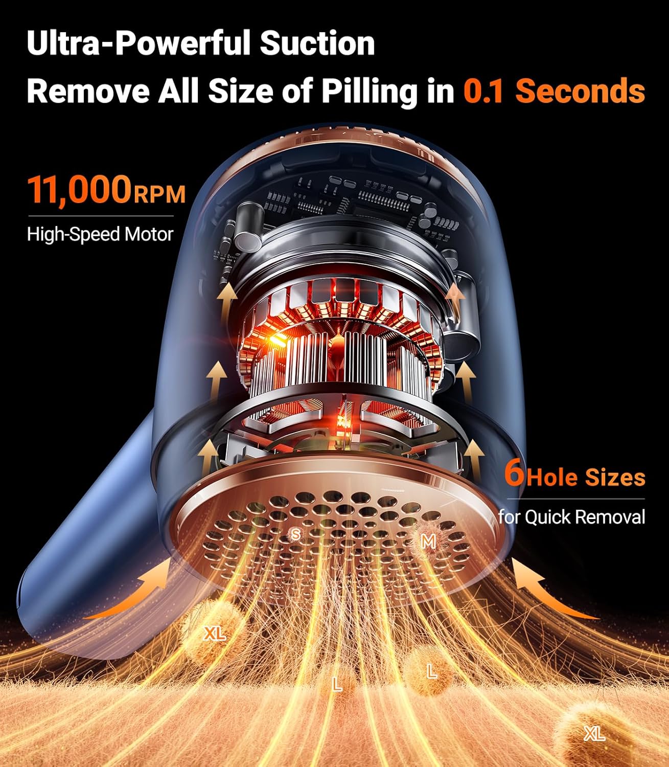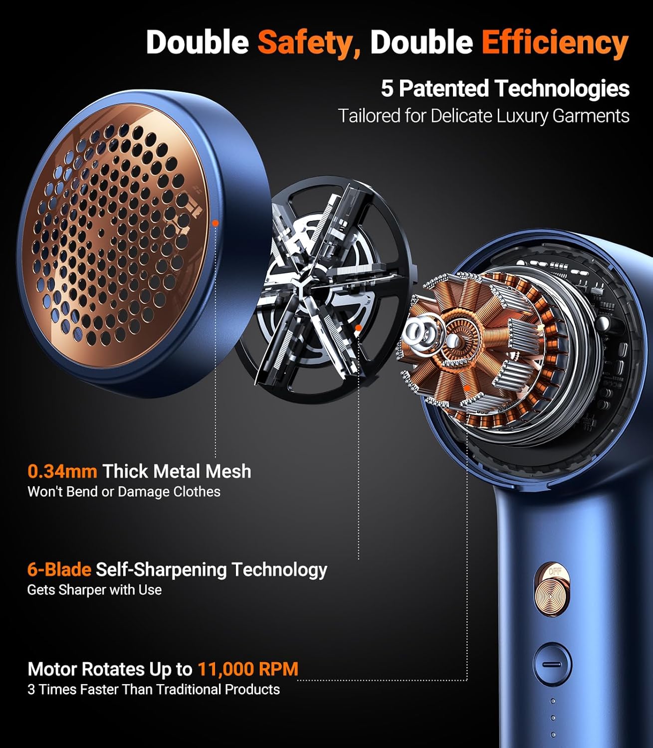 - [12 Times Removal Efficiency] Cleaning A sweater only takes ONE minute with TORRAS rechargeable fabric shaver. The turbine design increases the suction power of lint by 2 times. Six 45° blades increase the cutting efficiency by 3 times. The 11000 RPM motor doubled the cleaning speed. Each electric lint remover rechargeable contains numerous exquisite designs.