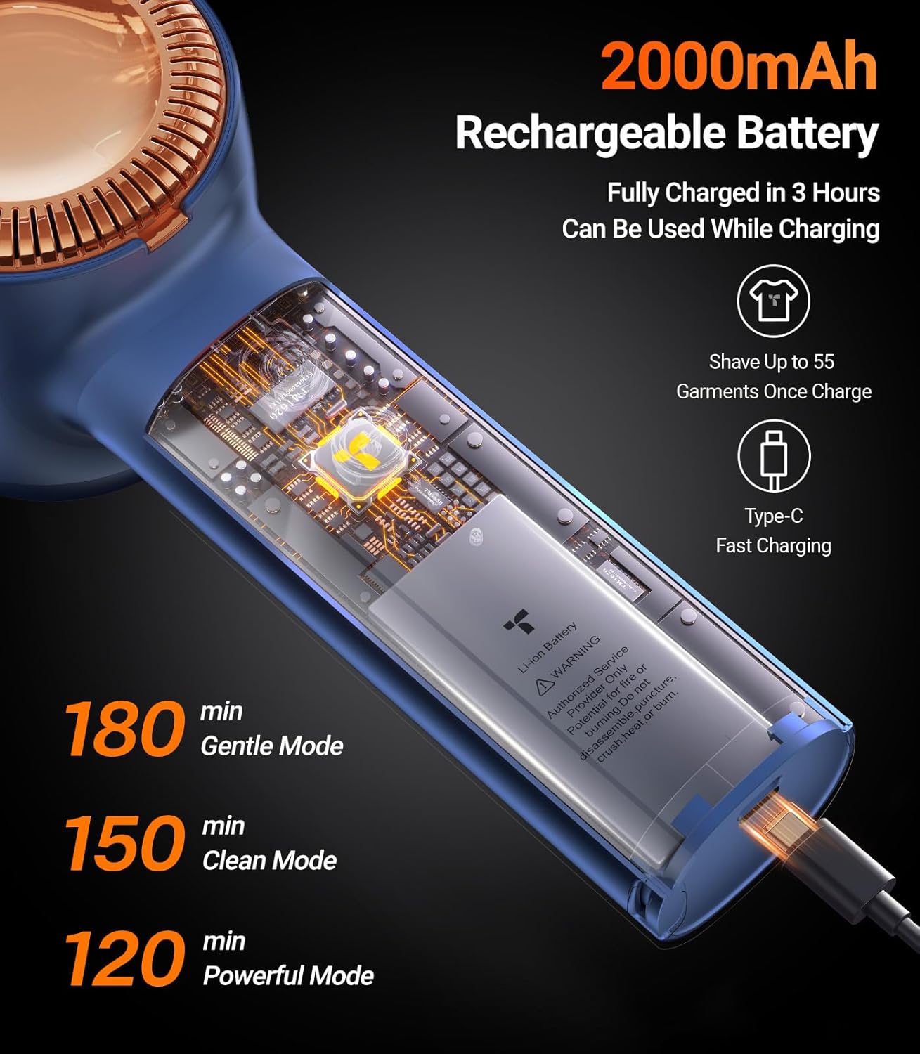 - [Wireless Use & Use while Charging] 2H charging can support 5H of use. One full charge of this electric clothes shaver can clean 50 pieces of clothes. You can also use this pilling remover for clothes while charging. Whenever you need it, it can always be ready for use.