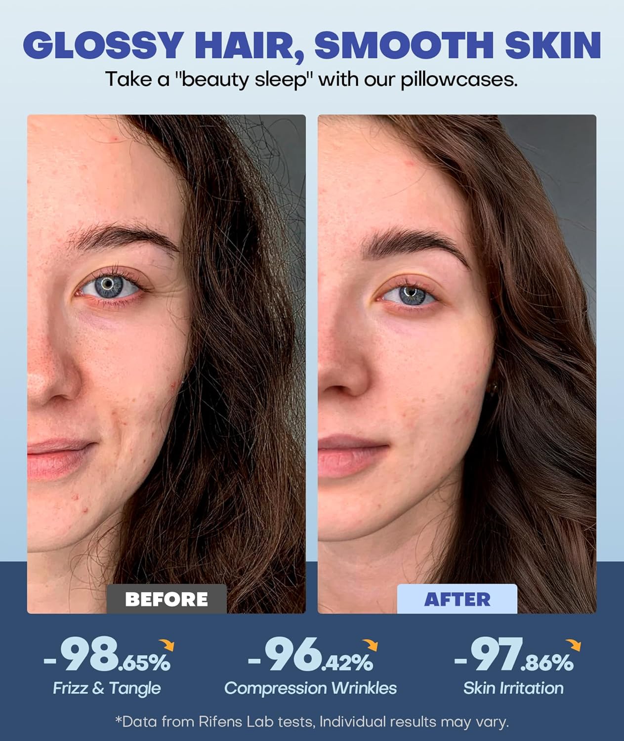 - โ๏ธ๐๐๐ค๐ ๐ "๐๐๐๐ฎ๐ญ๐ฒ ๐๐ฅ๐๐๐ฉ" ๐ฐ๐ข๐ญ๐ก ๐๐ฎ๐ซ ๐๐ข๐ฅ๐ฅ๐จ๐ฐ๐๐๐ฌ๐๐ฌ! - Rifens beauty pillow cases have an exceptionally smooth feel that you won't find in other popular pillowcase materials such as cotton, linen, or flannel, reducing friction against skin and hair. This smooth texture helps reduce the appearance of wrinkles and calms redness, leaving skin as smooth as silk. When you lie on our super silky pillowcase, the natural oils from your hair are maintained, rather than being absorbed, leaving your hair nourished. Whether your hair is straight or voluminous, you'll experience no more bedhead or tangles!