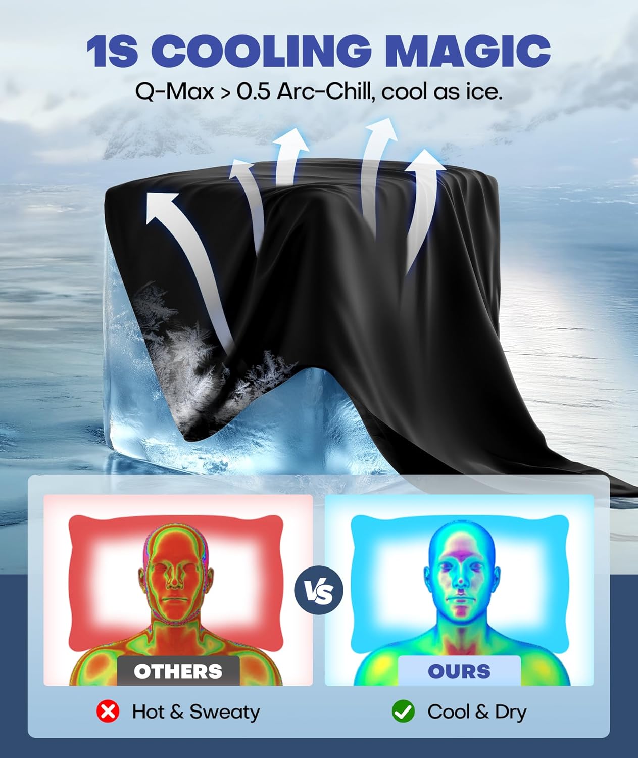 Ice Cooling Pillowcase for Hot Sleepers, Instantly Cool, Stays Cold All Night, Softer Than Silk Pillow Cases, Pillow Covers with Invisible Zipper, Gift for Men & Women - Queen Size, Black (1 Pack)