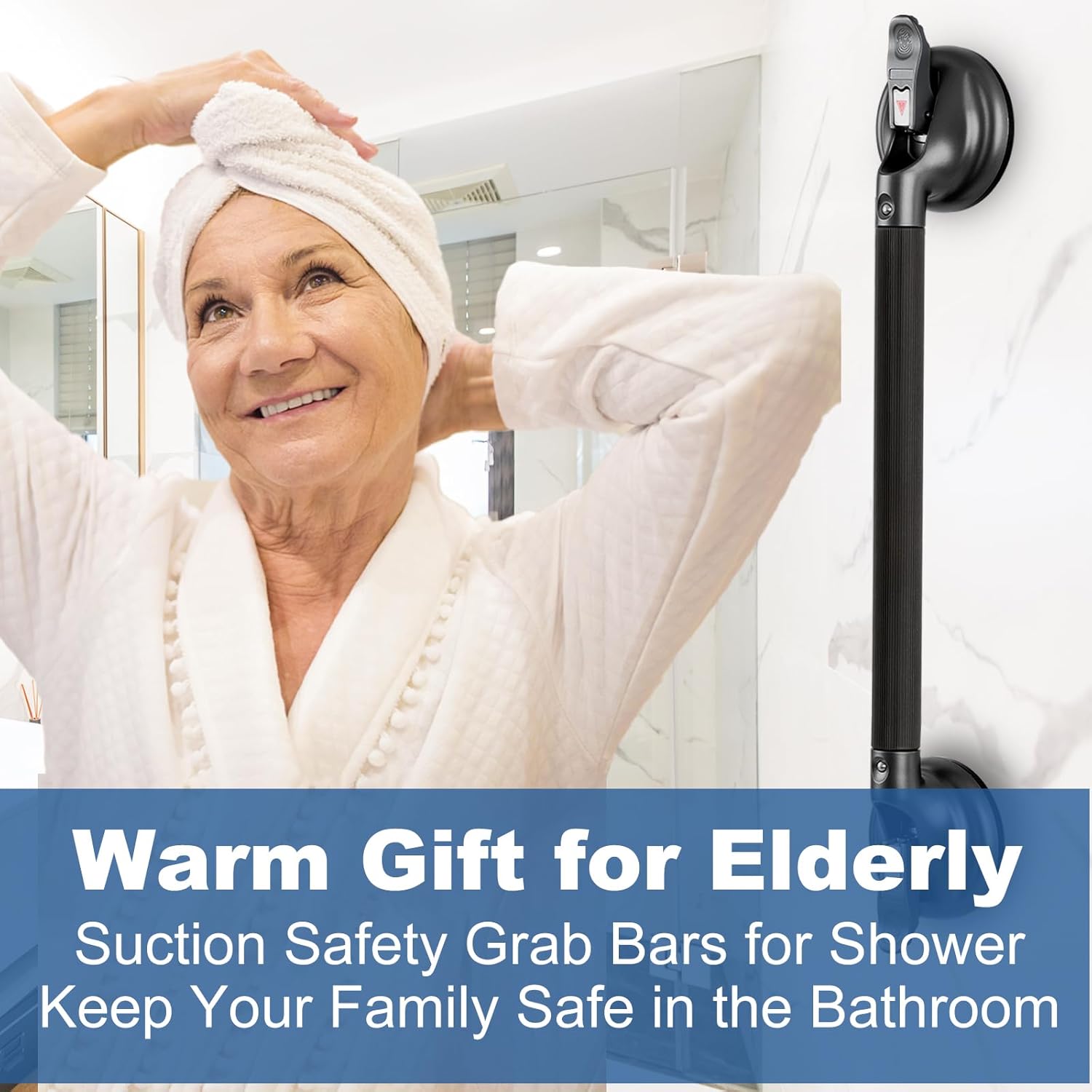 - 😃【Best Gift for your family in need】As time flies, our parents needs more and more help, sometimes we couldn't help our parents or other family in need in the bathroom all the time. But this suction grab bars for shower can easily and safely instead of us to provide them with safe, effective and convenient help! This is the best gift we can give them. Shower grab bars for seniors. Shower bars for elderly suction. Shower handles for elderly suction is Great bathroom accessories for shower chair.
