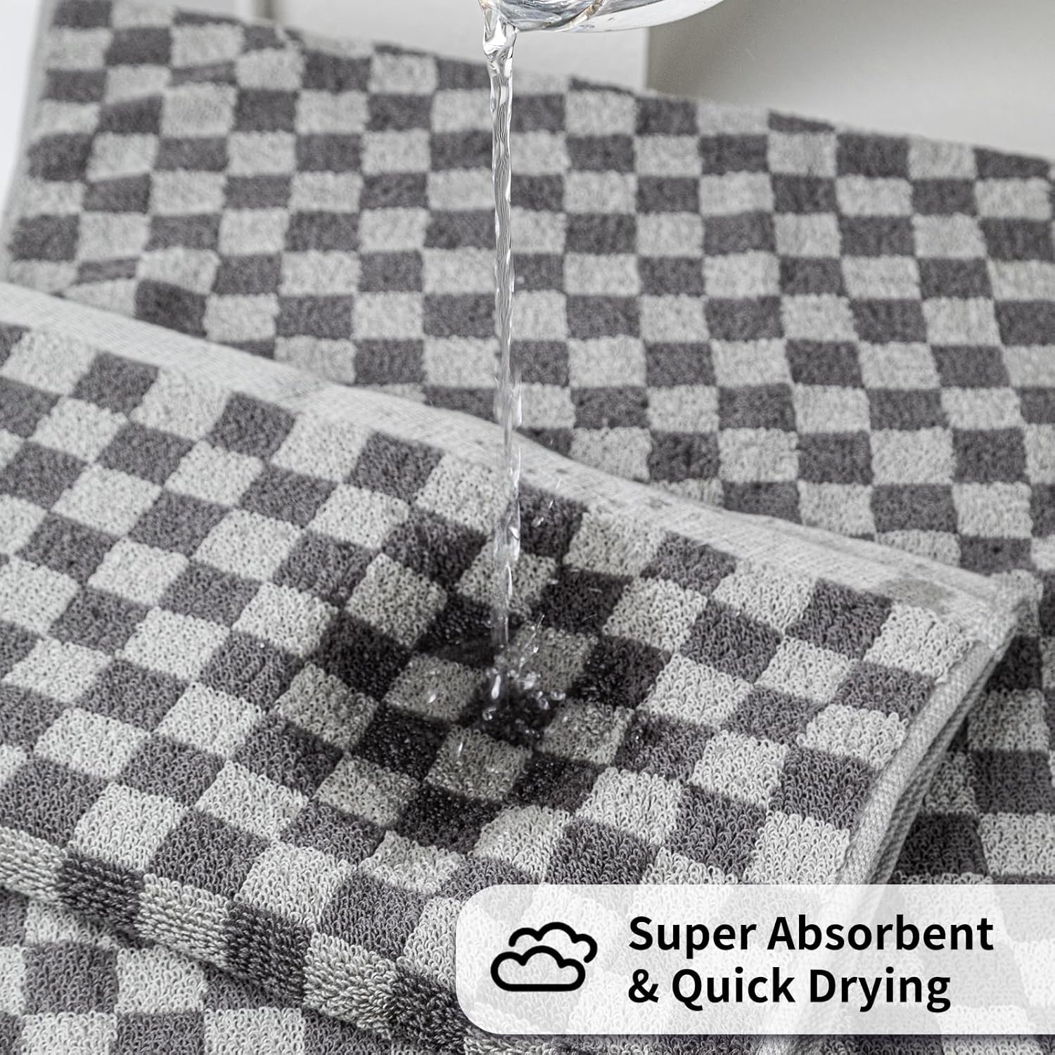 - The Towels Set Features: Pure cotton material, soft, absorbent and quick-drying; smooth fabric to enjoy sleep; wrapped edge is fine and tight; interesting checkered design, add a little fun to life