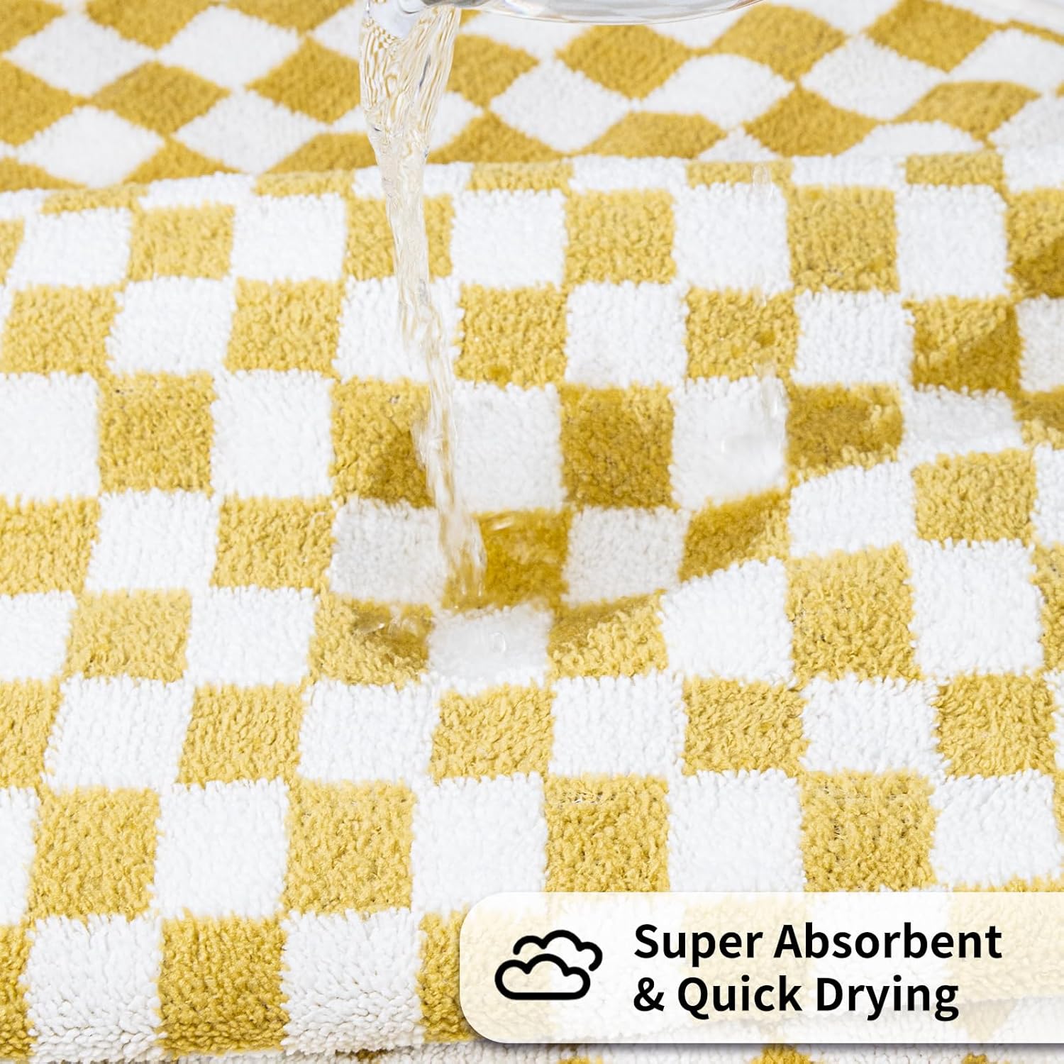 - CinGiiCo Bath Towel Set Includes: Checkered Bath Towels Large * 2 (55.12"*27.56"), Hand towels * 4 (29.52"*13.77"), Yellow. Family sharing fun set for life's needs. Soft & Absorbent & Quick-dry