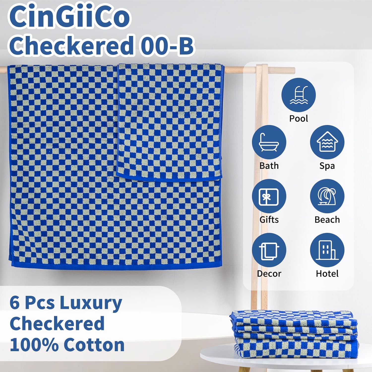 - CinGiiCo Bath Towel Set Includes: Checkered Cotton Bath Towels Large * 2 (55.12"*27.56"), Hand towels * 4 (29.52"*13.77"), Midnight Blue. Family sharing fun set for life's needs. Soft & Absorbent & Quick-dry