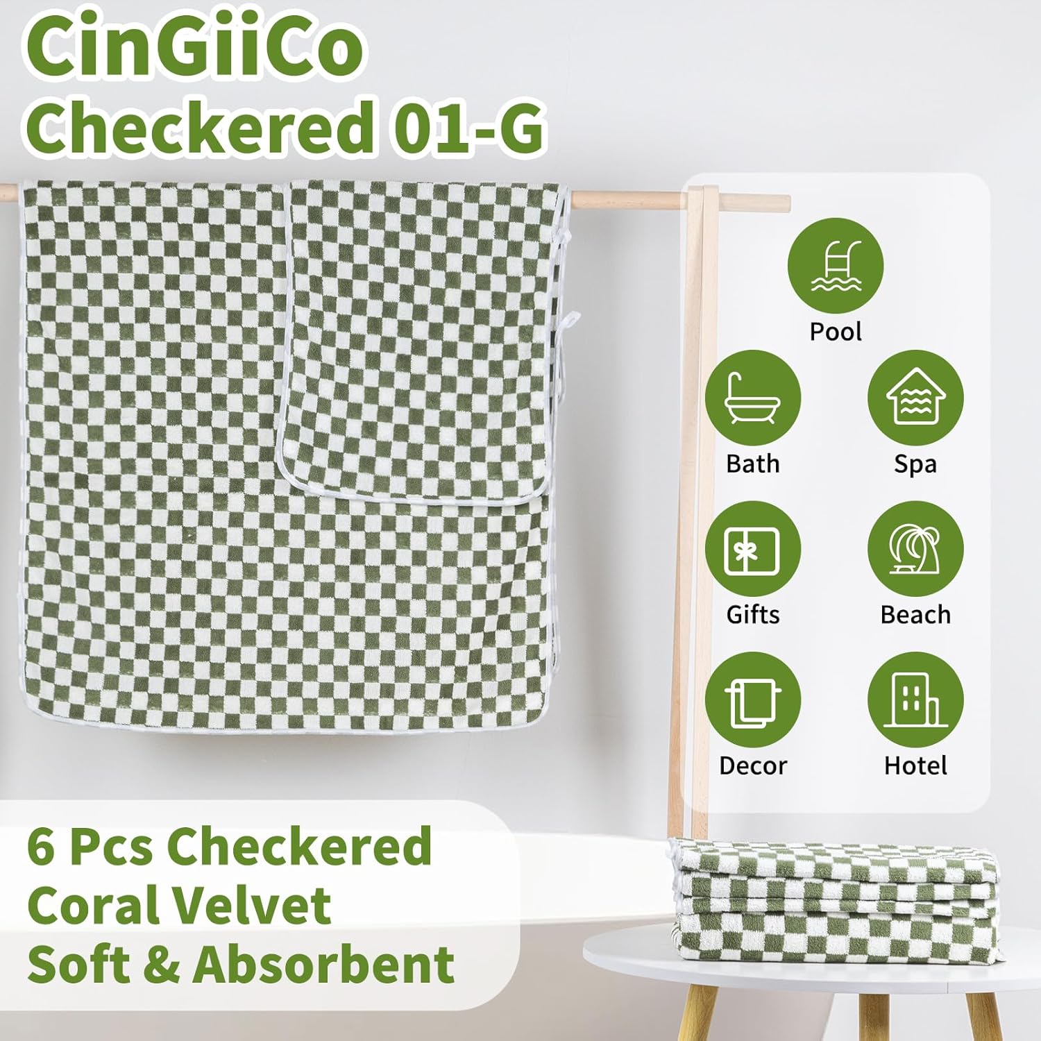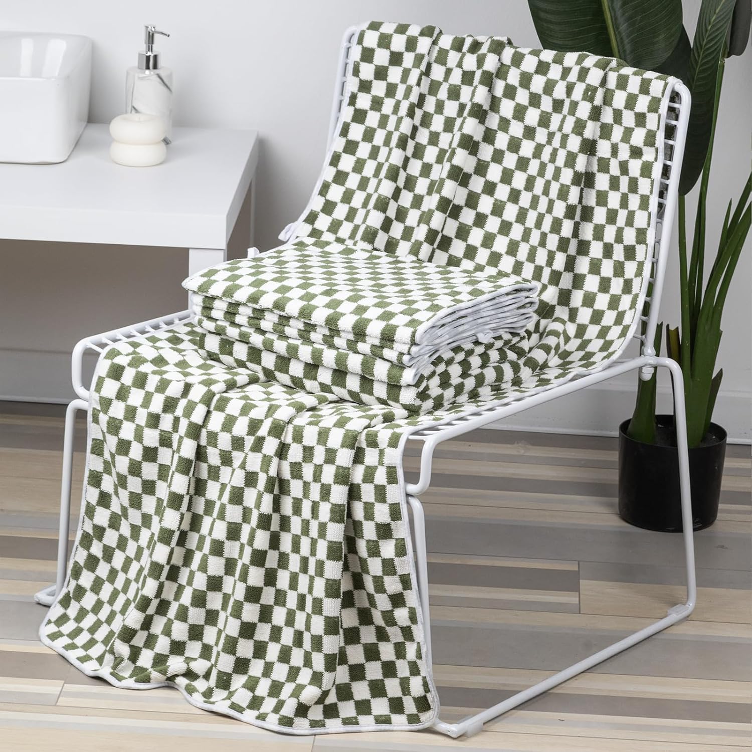 - CinGiiCo Bath Towel Set Includes: Checkered Bath Towels Large * 2 (55.12"*27.56"), Hand towels * 4 (29.52"*13.77"), Green. Family sharing fun set for life's needs. Soft & Absorbent & Quick-dry