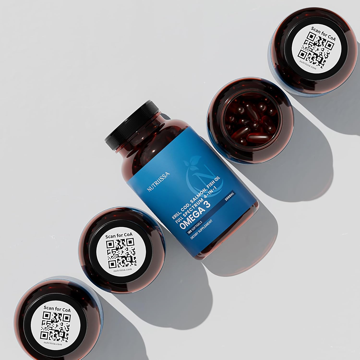 - Comprehensive Omega-3 Blend: Combines Antarctic Krill Oil, Cod Liver Oil, Salmon Oil, and Fish Oil for a complete Omega-3 profile.