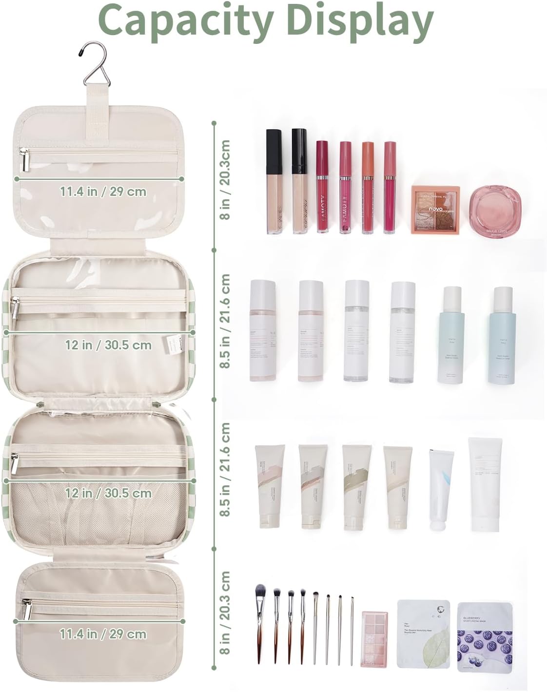 - LARGE VERSION - Fold size 12"x9"x5.5”/30.5x22x13 cm. We launch larger version to meet large-capacity, which you may choose large or medium size based on your needs. It could easily fit full-size travel essentials like shampoo & conditioner, lotion, face wash, toothpaste, toothbrushes, hair brush and daily makeups
