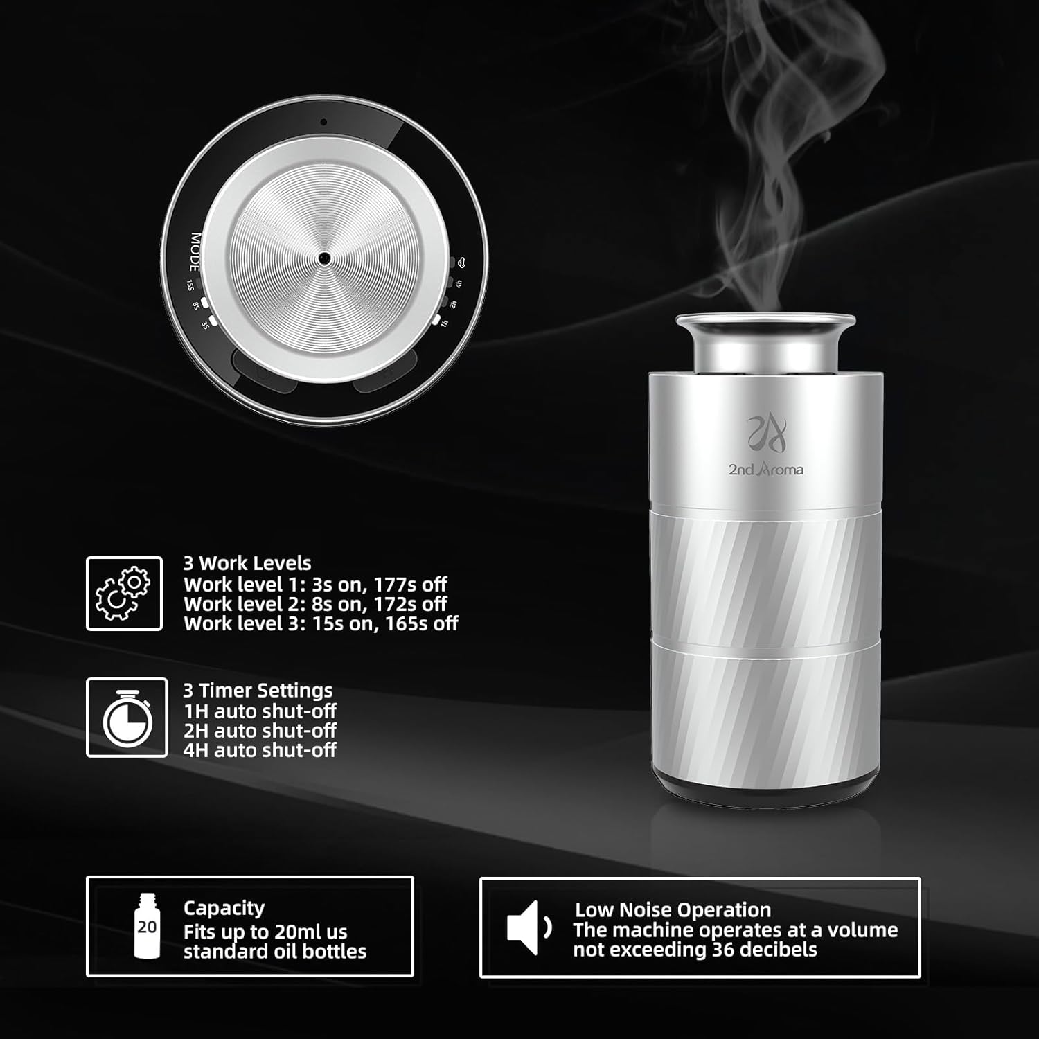 - Premium Aluminum Material & Quiet Operation & Wide Scent Coverage : The fragrance machine using aluminum alloy and the low noise below 36db. You will feel comfortable and relax. Covering up to 500 sq.ft, car oil diffusers provide long-lasting fresh scents