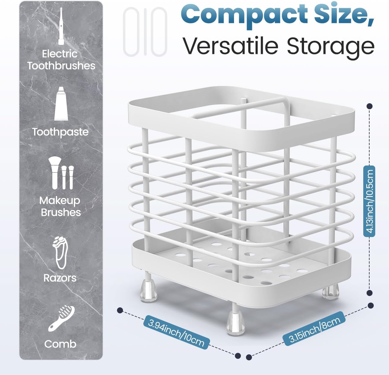 - Compact Size: Size: 3.9*3.15*4.13 inches. You can easily store all your bathroom essentials, such as electric toothbrushes, toothpaste, tongue brushes, and razors in the shower toothbrush holder. The toothbrush holder keeps your countertop tidy without taking up too much space.