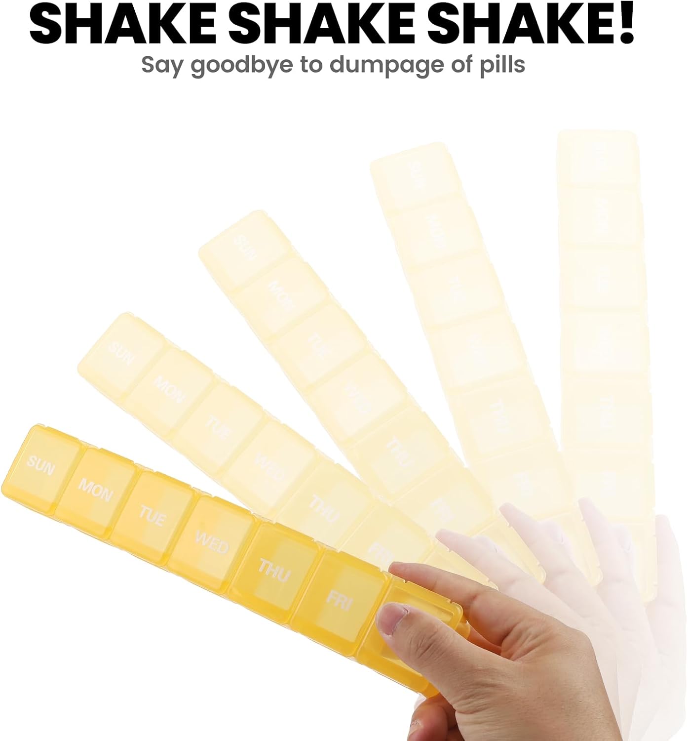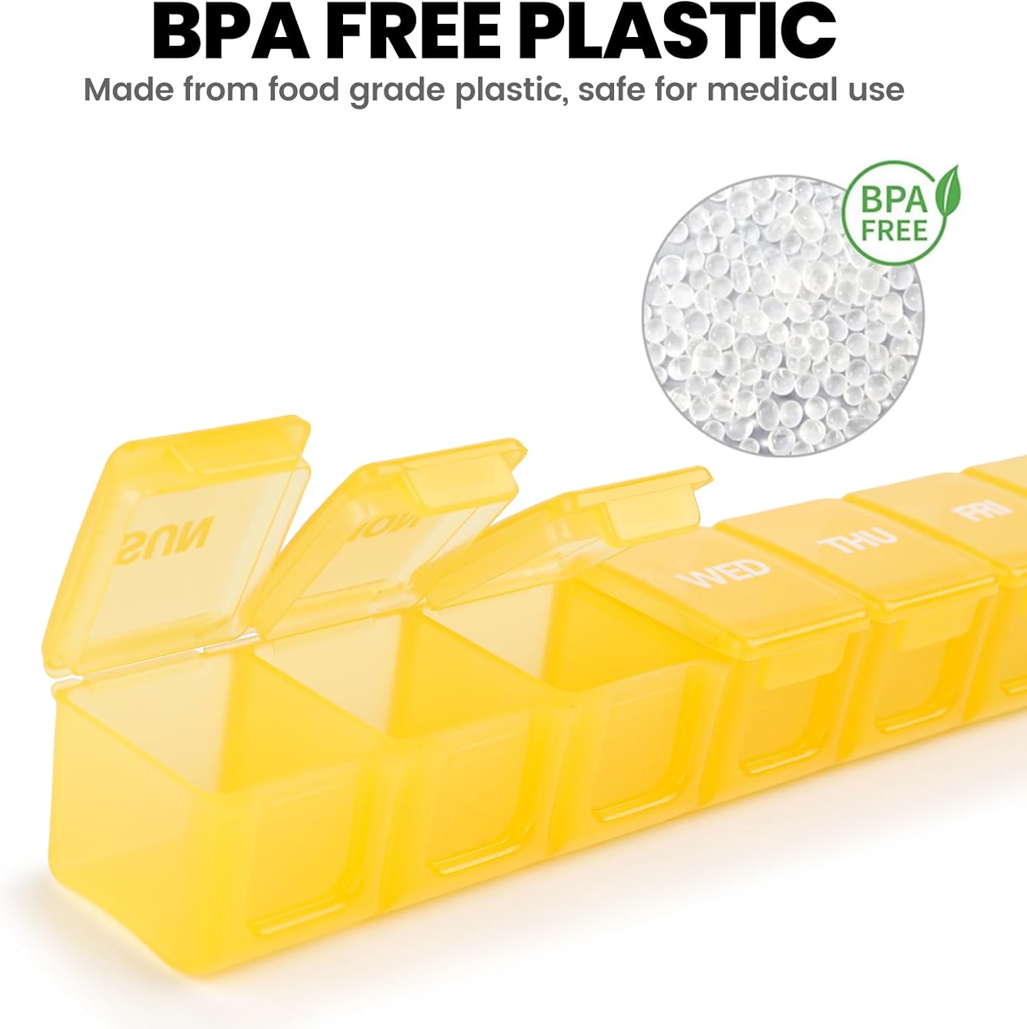 Sukuos Extra Large Daily Pill Organizer 7 Day, Easy to Open Weekly Pill Box Case, Portable Medicine Organizer with Clear Lid for Vitamins, Fish Oils or Supplements (Yellow)