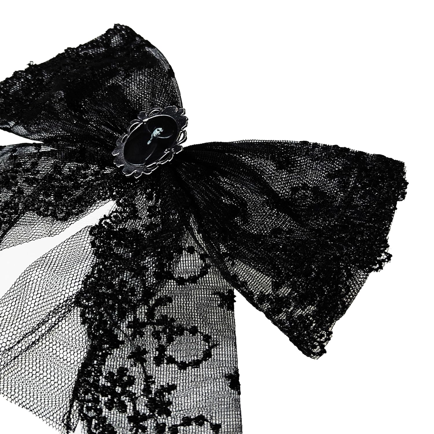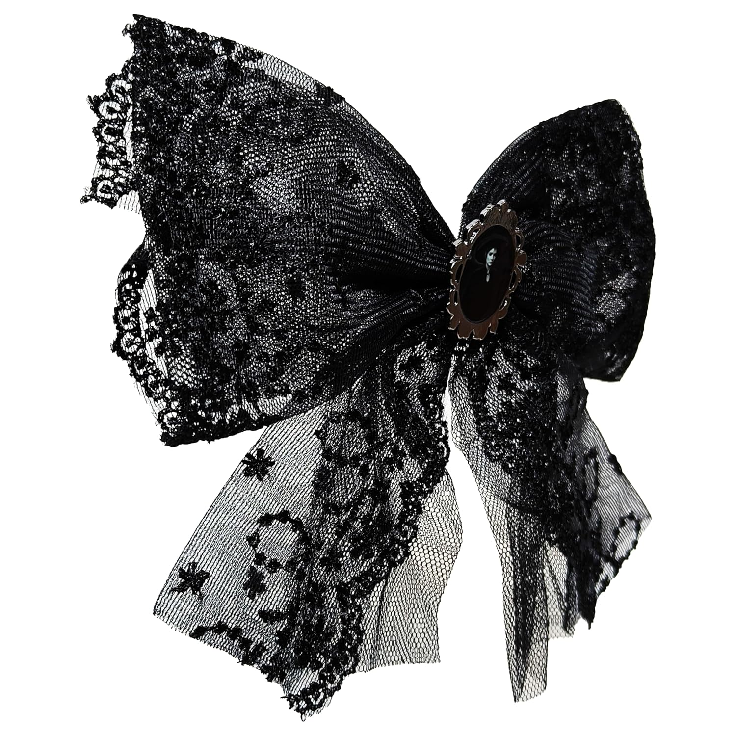 LUV HER Beetlejuice themed Long Tail Hair Bow for Girls with Alligator Clip with Charm - Gothic Hair Accessory, Ages 3+