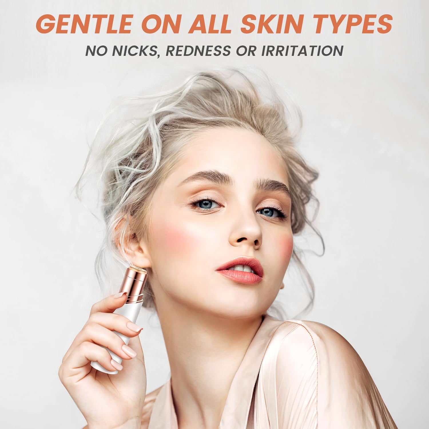 Facial Hair Remover for Women- as Seen on TV Painless Face Shaver -Mini Hair Remover, Electric Razor Shaver Portable Bikini Epilator for Lips, Chin(White+2 Heads)