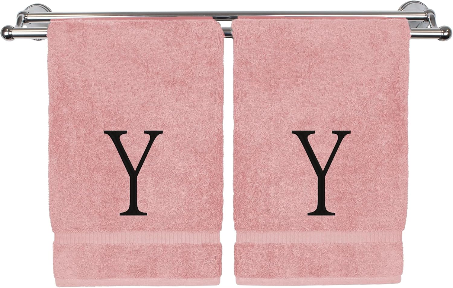 Monogrammed Hand Towel, Personalized Initial Gift, Extra Absorbent 100% Turkish Cotton - Soft Terry Finish - Set of 2 - Black Block Initial Y - Embroidered on Pink Towels