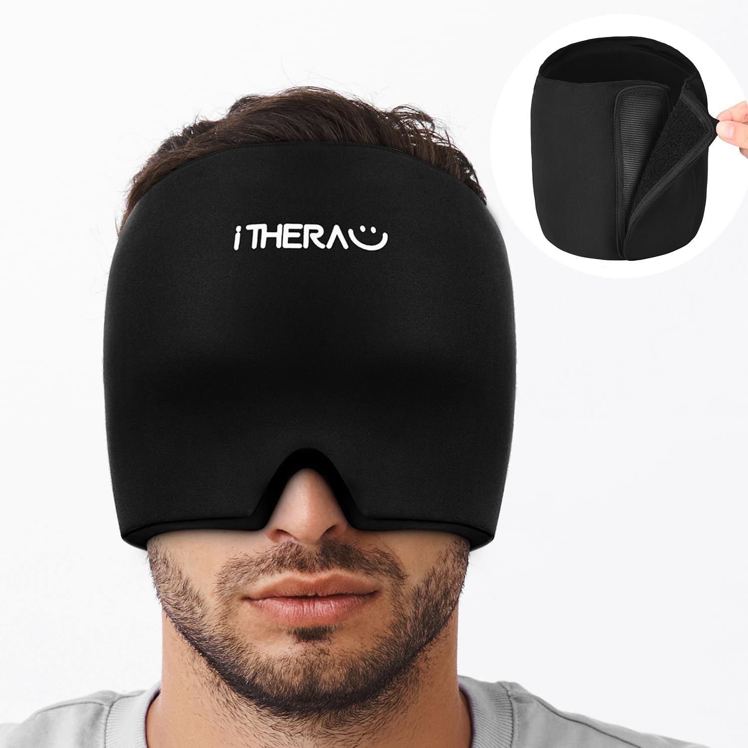 iTHERAU Migraine Relief Cap, Soothing Headache Hat, Gel Ice Pack Head Wrap with Hot and Cold Therapy, Headache Relief Cap for Sinus, Puffy Eyes, Tension and Stress Relief