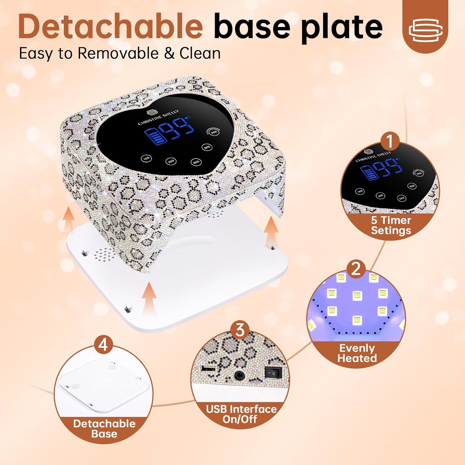 - 【Sparkling & Cordless Rechargeable】The uv nail lamp incorporates a built-in rechargeable battery, granting you an uninterrupted usage time of up to 6 hours following a full charge cycle of approximately 3 hours. Every inch of the product is meticulously adorned with hand-applied diamonds, resulting in a stunningly shiny surface. The meticulous craftsmanship gives the product a unique and distinctive appeal