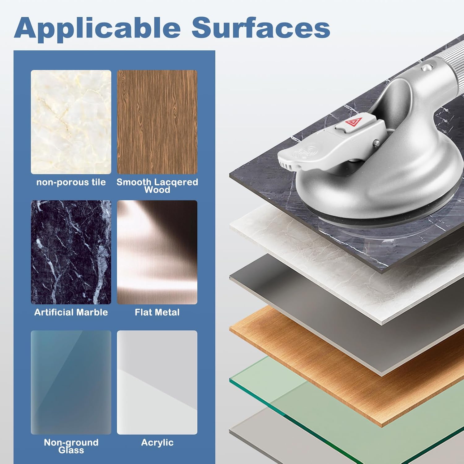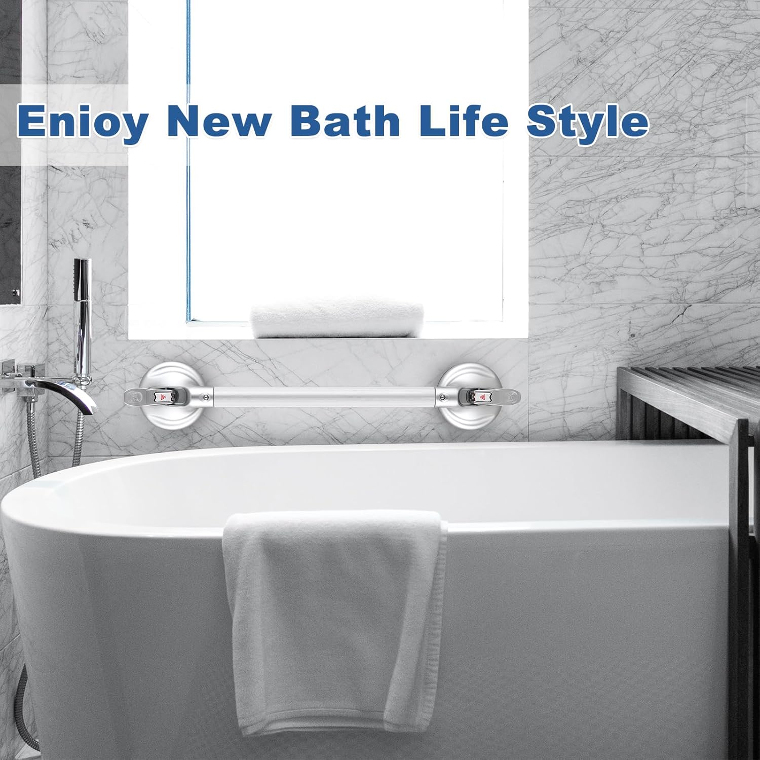 - ⛱️【Suitable Surfaces】The suction grab bar adheres securely to smooth, non-porous surfaces such as metal, glass, tile, marble, stainless steel, and acrylic. It is not suitable for uneven tiles, unfinished marble, wallpaper, drywall, or porous surfaces.