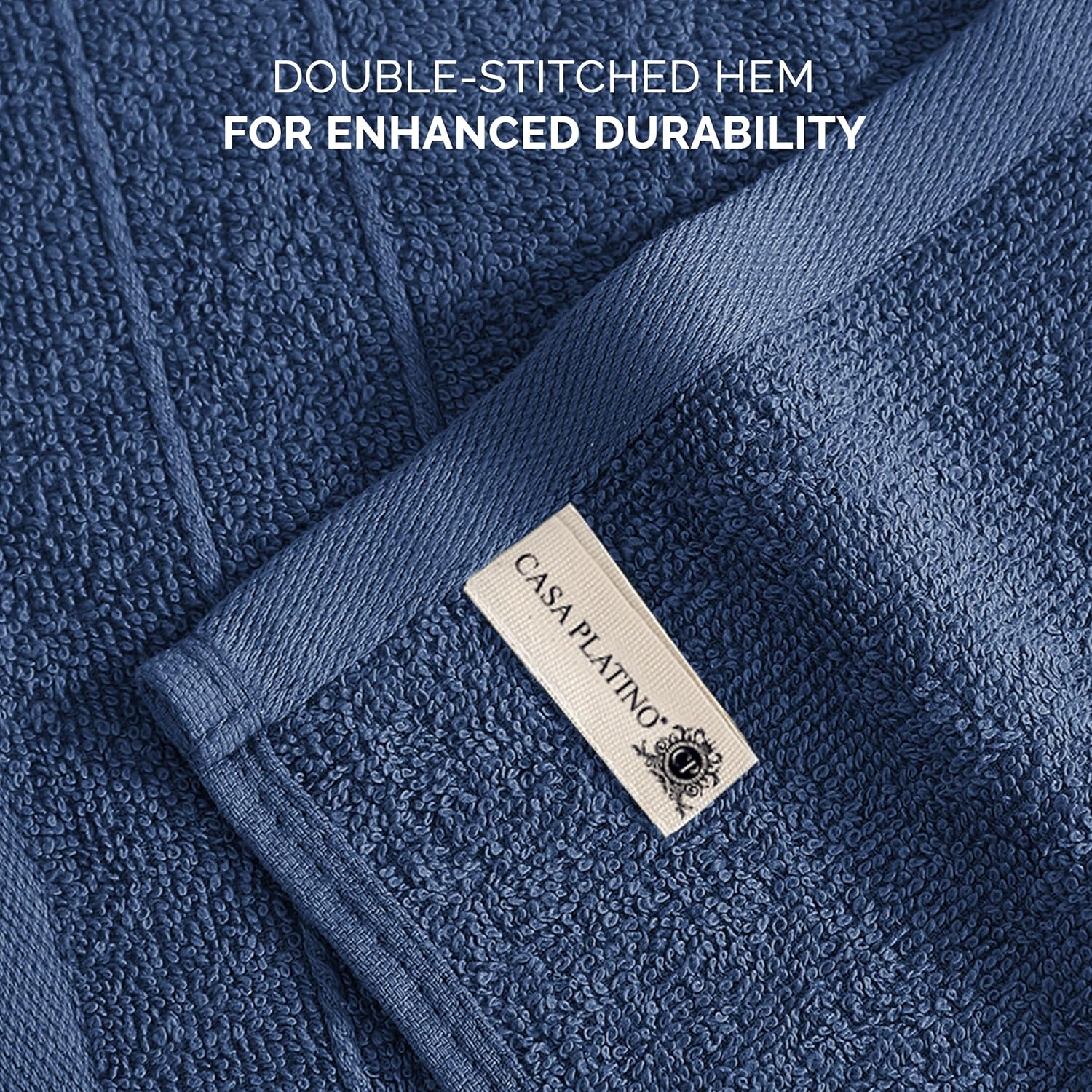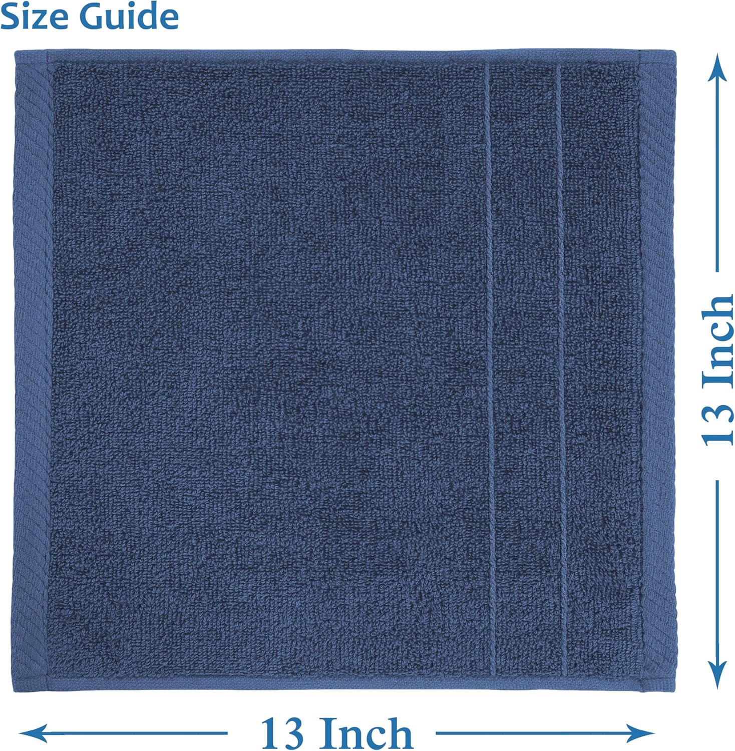 Casa Platino Washcloths Pack of 12 - Spa & Salon Quality - 100% Ring Spun Cotton Face Cloths - Soft & Ultra Absorbent Wash Cloth Set for Body, Beauty, Home, Gym - Fingertip Towels - 13"x13", Navy Blue
