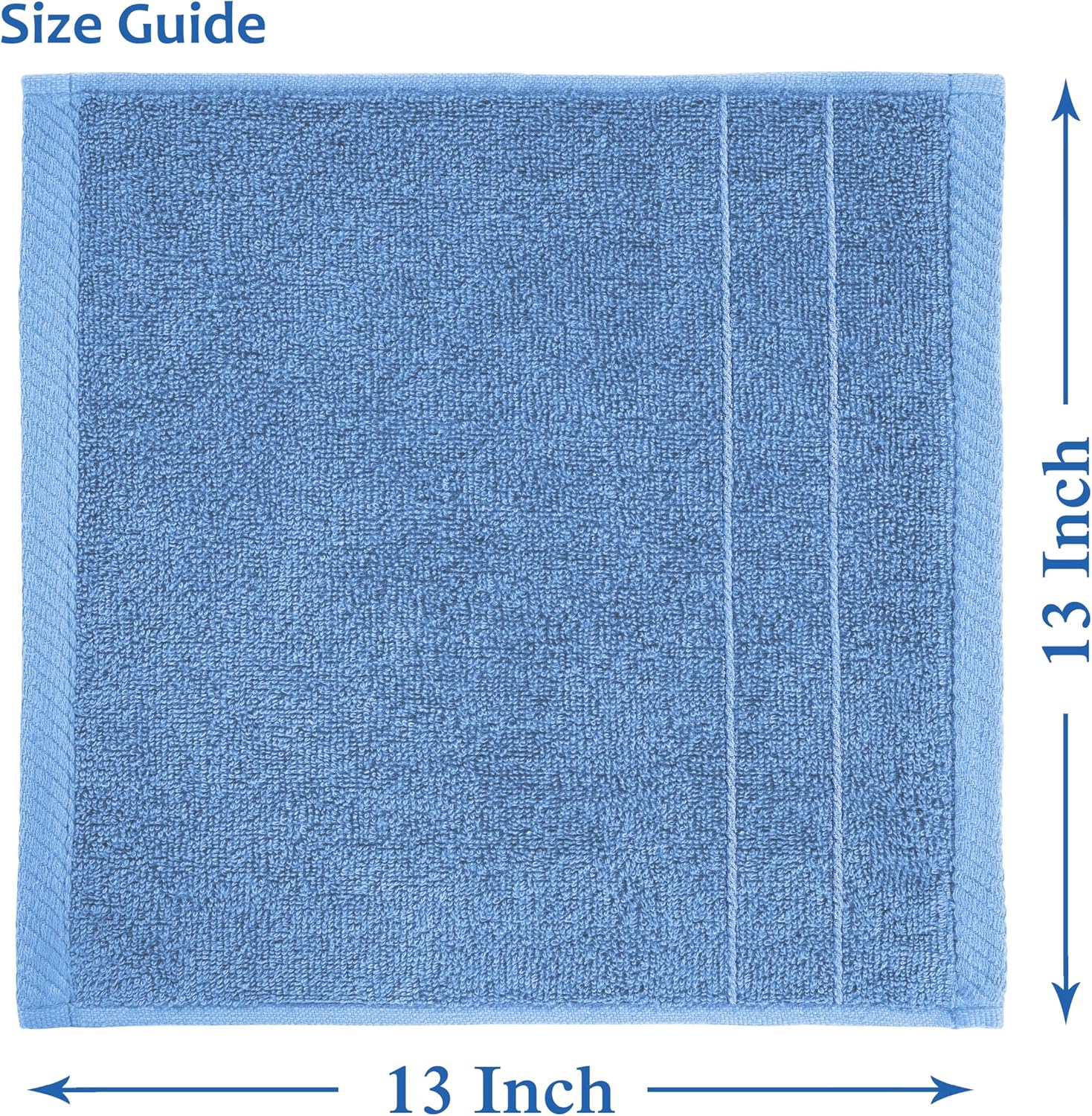 Casa Platino 100% Cotton Wash Cloths 12 Pack - Spa & Salon Quality - Ring Spun Cotton Face Cloths- Soft & Absorbent Washcloths for Shower, Home, Kitchen - Fingertip Towels - 13"x13", Cerulean Blue