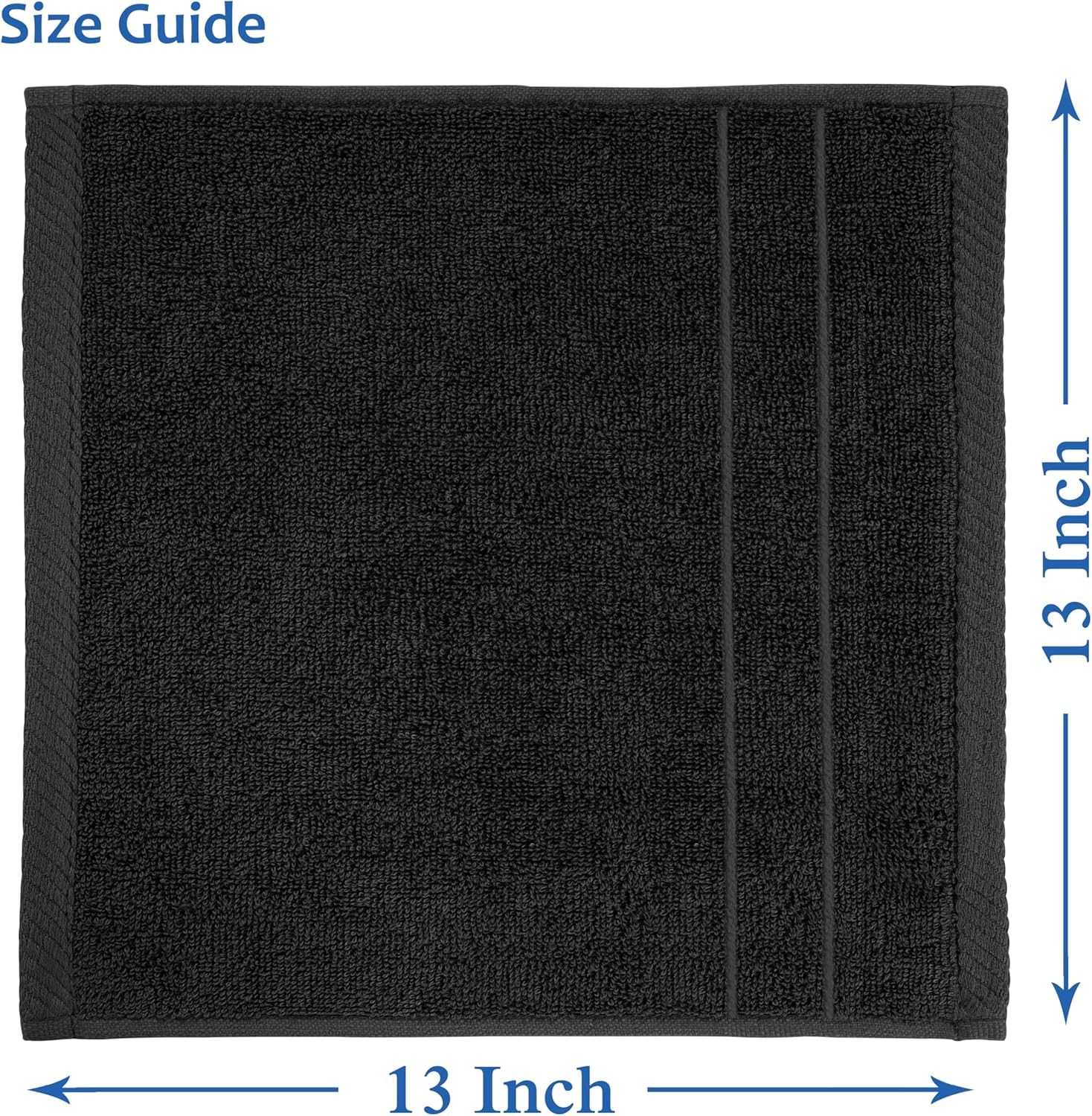Casa Platino 100% Cotton Washcloths 12 Pack - Spa & Salon Quality Face Towels - Ring Spun, Soft & Absorbent Wash Cloths for Body, Beauty, Home, Gym - Fingertip Towels Set- 13"x13", Black Towel Set