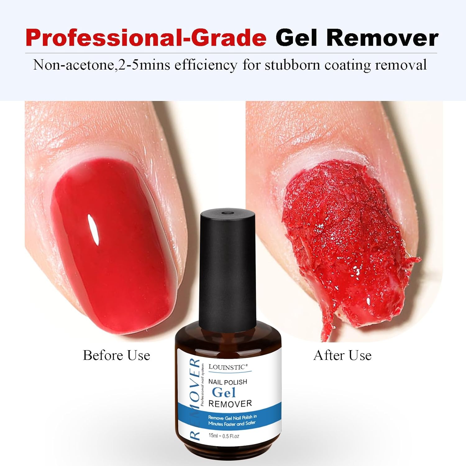 LOUINSTIC Gel Nail Polish Remover-2pcs Gel Polish Remover Kit with 100/180 & 600/3000 Grit Nail Files,2-5 Minutes Quick & Easy Gel Nail Polish Removal at Home, No Irritation,No Need to Soak or Wrap