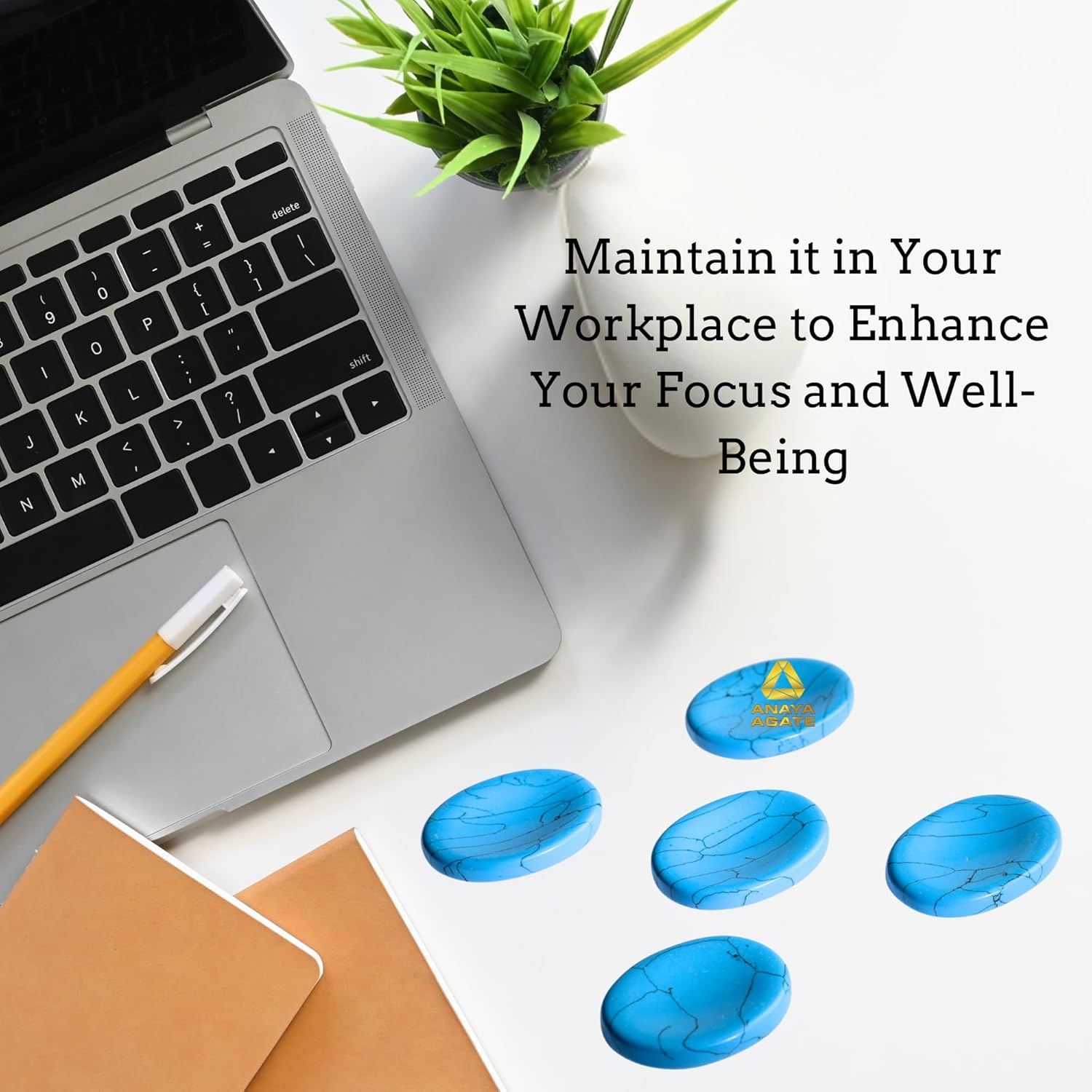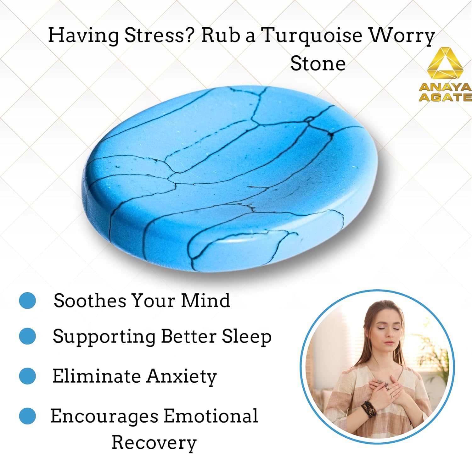 Turquoise Howlite Worry Stones – Crystal Thumb Worry Stone for Anguish, Stress – Relaxing & Soothing Balance Stones for Meditation, Relief – Healing Stones & Crystals for Men, Women