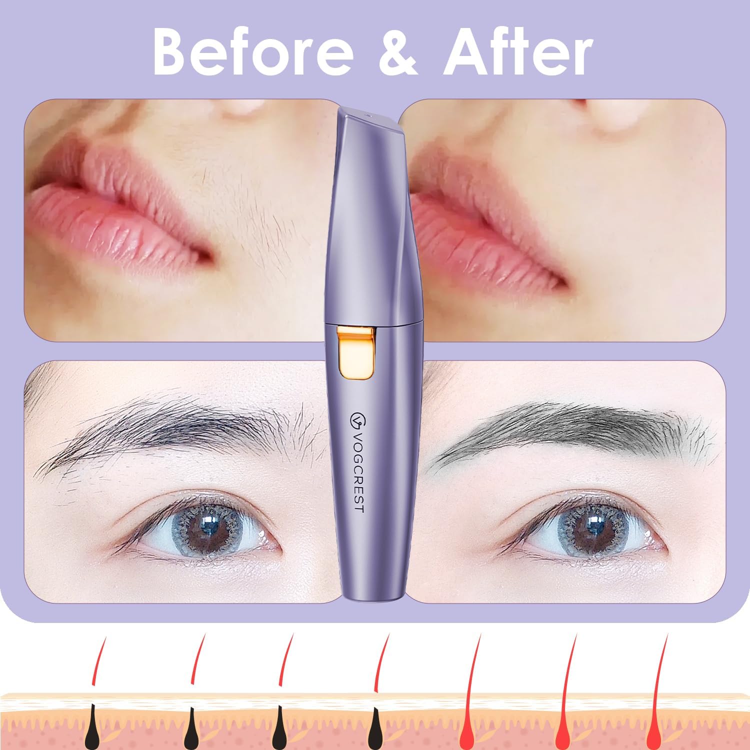 VG VOGCREST Eyebrow & Facial Trimmer: 2-in-1 Rechargeable Facial Hair Removal & Eyebrow Shaver - Painless Razor with Built-in LED Light (Solar Purple)