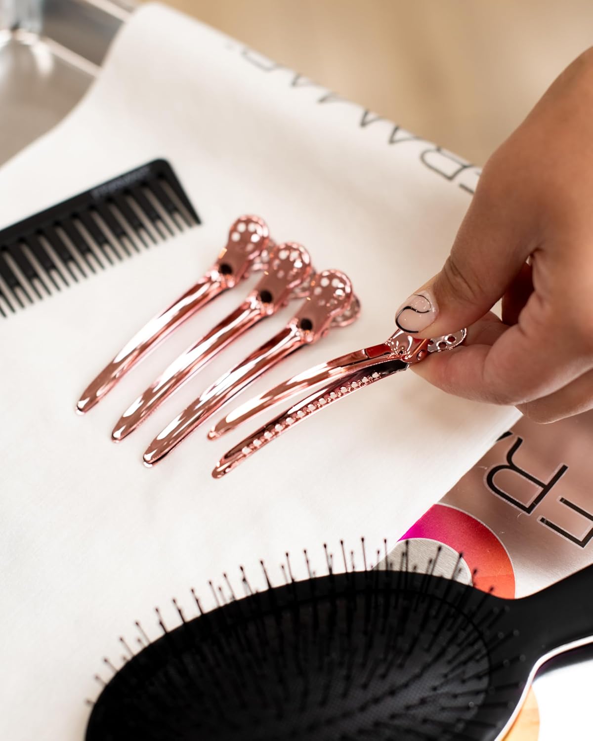 Framar Rose Gold Metal Hair Clips For Styling - Professional Hair Styling Clips, Hair Sectioning Clips, Salon Hair Clips Metal, Hairclips, Hair Salon Supplies – Extra Strong Hold – 4 Pack