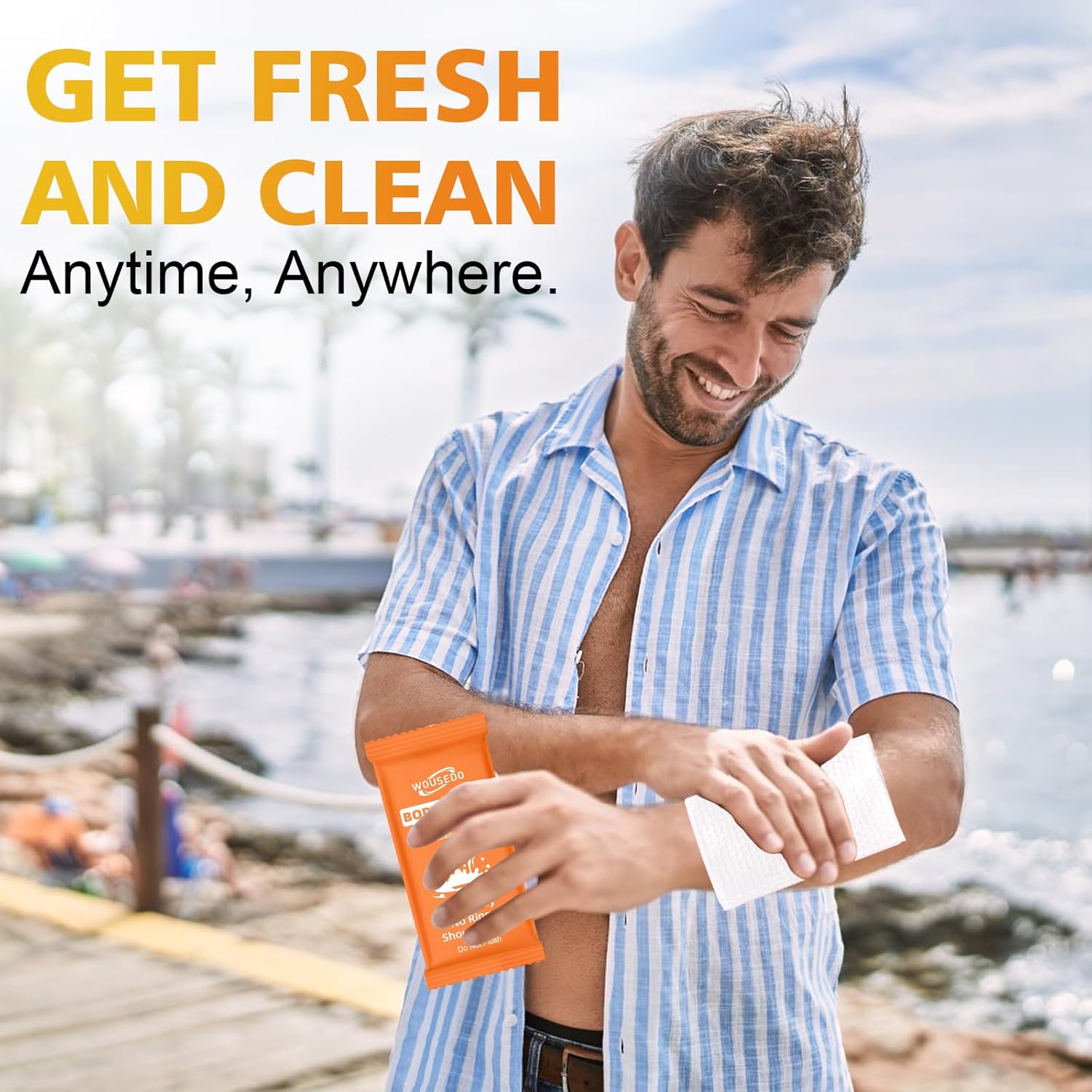 300 Pcs Ultra Thick Soft Large Body Wipes Individually Wrapped(7.87" x 9.45"),Shower Wipes for Adults Bathing No Rinse,Personal Cleansing Wipes for Travel Gym,Bulk Deodorant for Homeless(Orange)