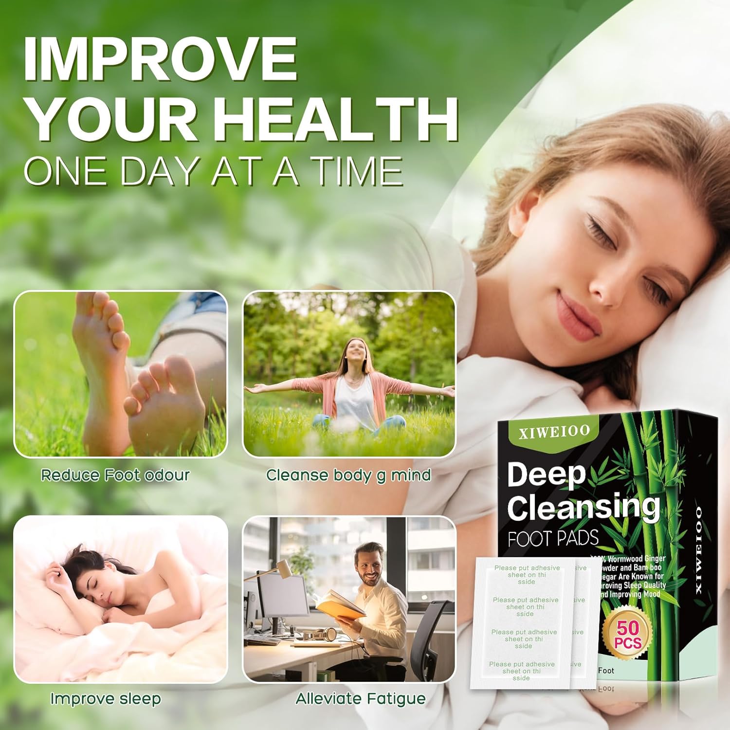 - 💕Easy to Use: Simply attach these foot pads to your feet before bedtime, and they will help you sleep more easily. After using the bamboo foot pad for 6-8 hours, your body's waste products begin to be eliminated. 50Pack Foot Pads, Ginger Oil Bamboo Charcoal, Foot Care Patch Message Deep Cleansing for Stress Relief, Better Rest, Feet Health Patches