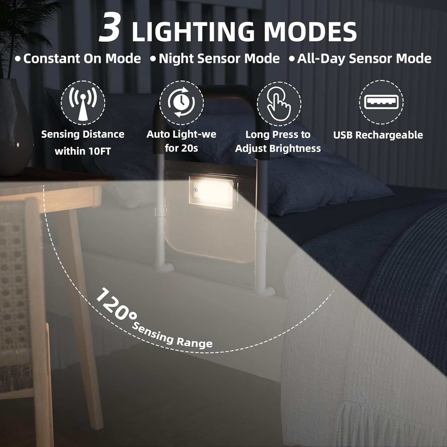 - ๐๐๐๐ข๐๐๐ฅ ๐๐๐๐ซ๐๐ข๐ฅ๐ฌ ๐๐ข๐ ๐ก๐ญ & ๐๐ญ๐จ๐ซ๐๐ ๐ ๐๐จ๐๐ค๐๐ญ: To prevent dangerous falls, our portable handle bedside railing features a sturdy safety LED motion sensor light. This light magnetically attaches to wherever you want to stick, ensuring you have a clear path when going to the bathroom at night. The induction of bright light automatically activates when moving, increasing your safety and peace of mind. The bed handrail is equipped with a practical storage bag, which can be used to store glasses, remote control, books, newspapers and medical supplies.