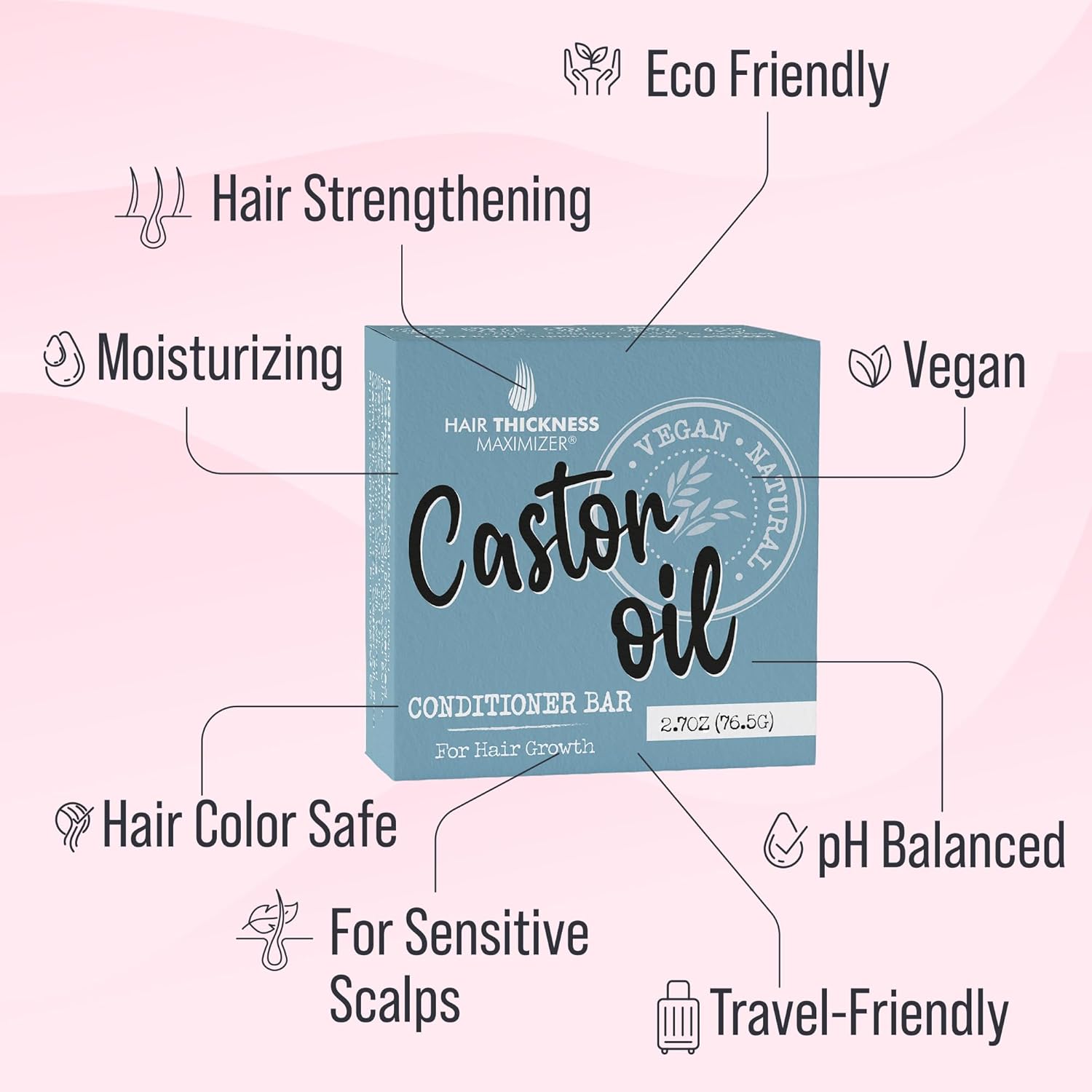 Castor Oil Conditioner Bar for Hair Growth. Eco Friendly, Vegan, Color Safe, pH Balanced. Solid Conditioner Bar Equal To 3 Liquid Bottles. Zero Plastic, USA Made, Strengthening & Dry Hair Relief