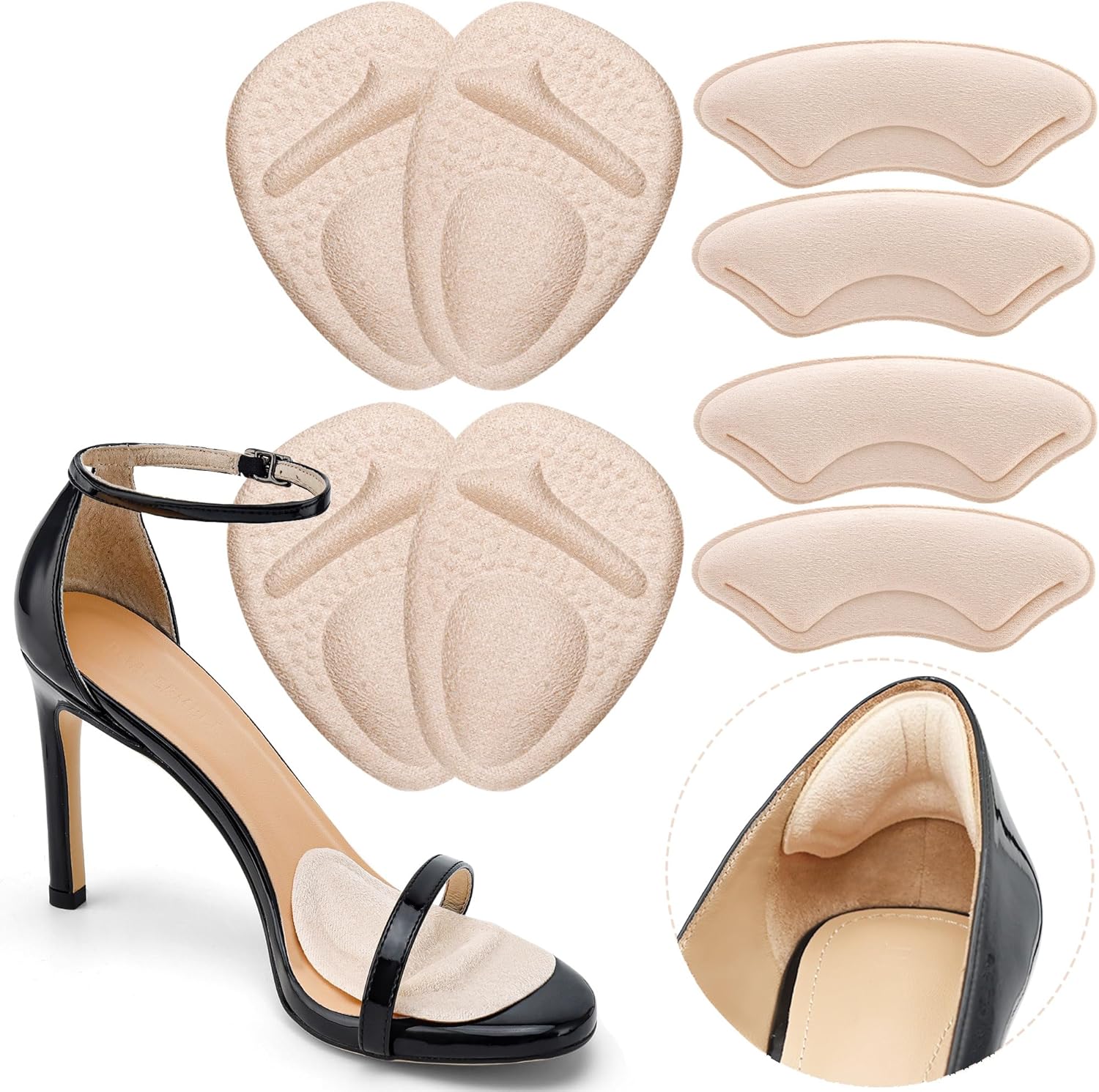 Heel Cushion Pads, Metatarsal Pads for Women, Ball of Foot Cushions, Liners for Pain Relief, Prevent Blisters Friction, Shoe Inserts for Loose Shoes to Make Fit Tighter (4 Pairs)
