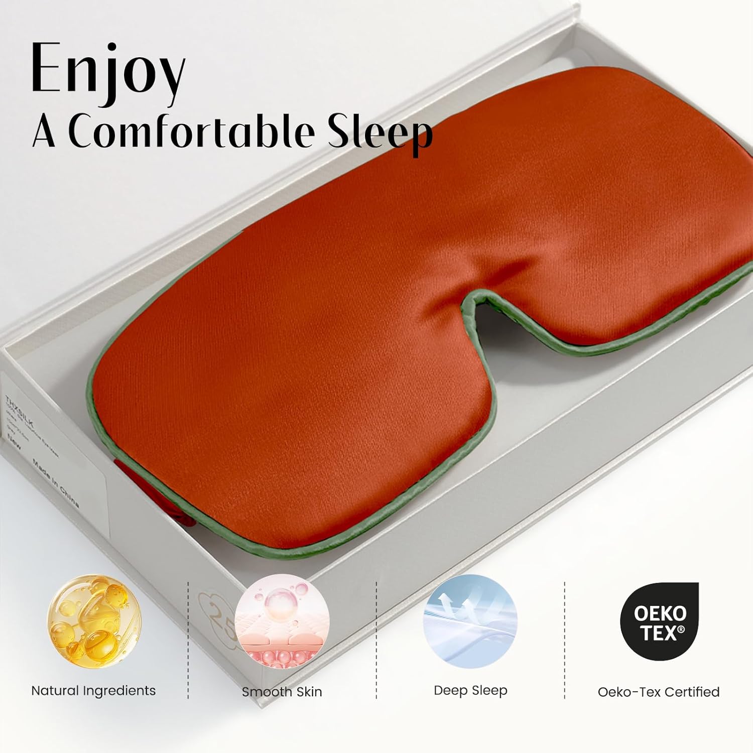 - PACKAGING INCLUDED & PRODUCT SIZE: Each package contains 1Pcs sleep eye mask, the size of the blindfold is 4×9inches. THXSILK's natural silk is an Oeko-Tex certified pure fiber, which ensures the fabric's natural structure and eco-friendly quality.