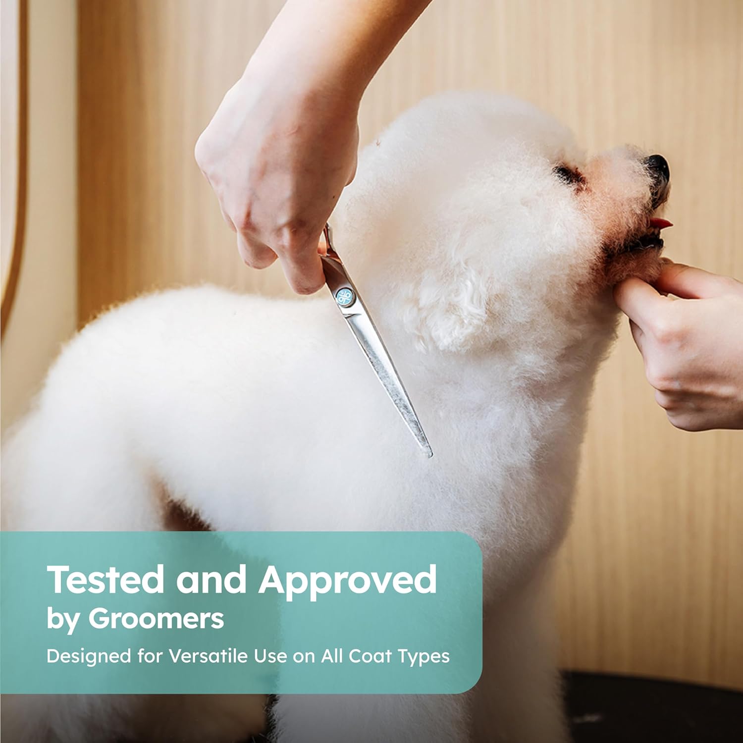 - Straight Design for Versatile Grooming – 8” straight blades ideal for full-body trims and shaping on most dog breeds. Provides clean, even cuts without pulling or snagging, ensuring smooth, efficient grooming sessions.