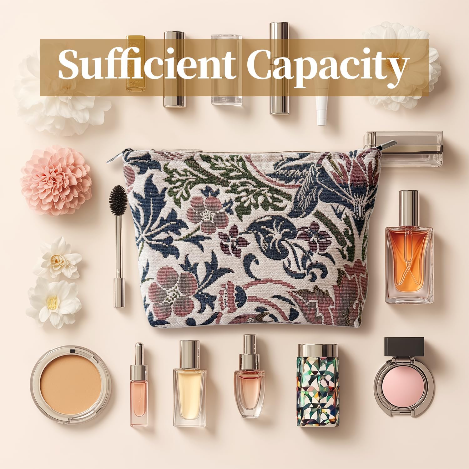 - Exquisite Floral Chenille Fabric Makeup Bag: Made with premium woven fabric featuring a vibrant floral theme, adding a touch of elegance and nature to your daily organization.