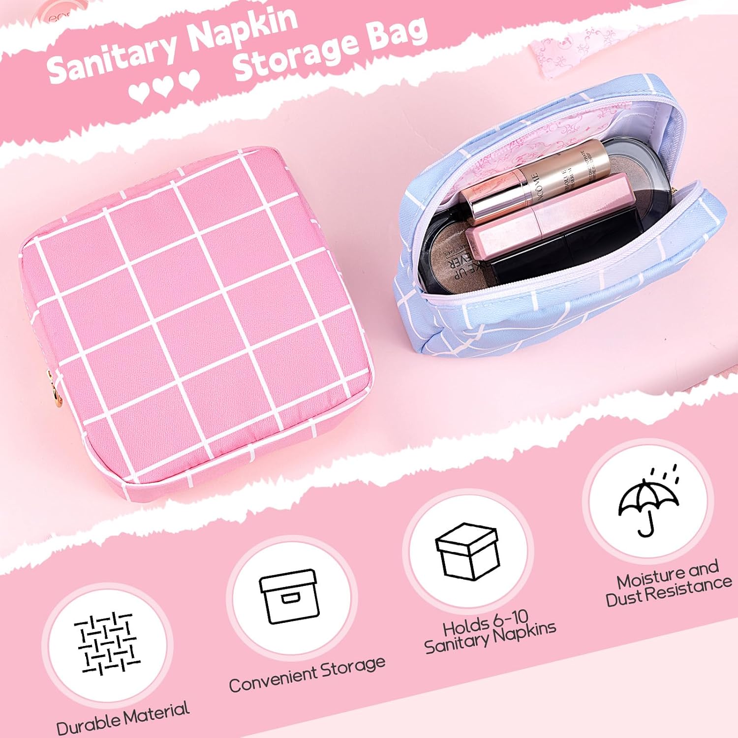 - 👝 【Perfect Size for Period Essentials】 - This compact period bag (5.1 x 5.1 x 1.6 in / 13 x 13 x 4 cm) easily holds 6-10 standard pads (Size 1-5) or a combination of pads, liners, and tampons, making it an ideal sanitary napkin storage bag for your purse or backpack