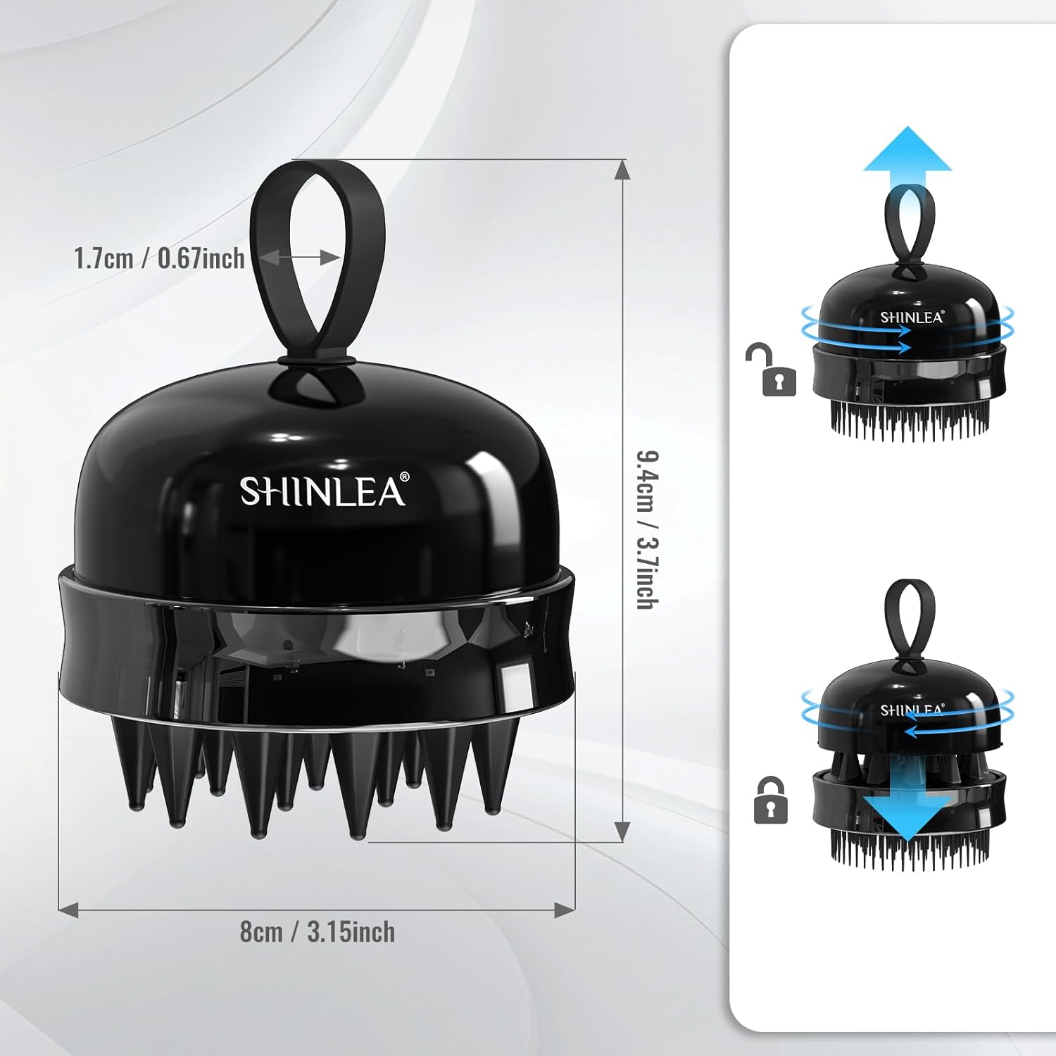 - Soft Silicone Bristles: This double-sided shampoo comb has 19 soft silicone bristles on one side, silicone bristles can be reduced in the shampoo to reduce the pull on the hair, and is designed into three different heights, but also in the use of the scalp to play a massage and deep cleansing effect, effective removal of dandruff! Clever snap design, help you more easily switch and fixed to the other side.