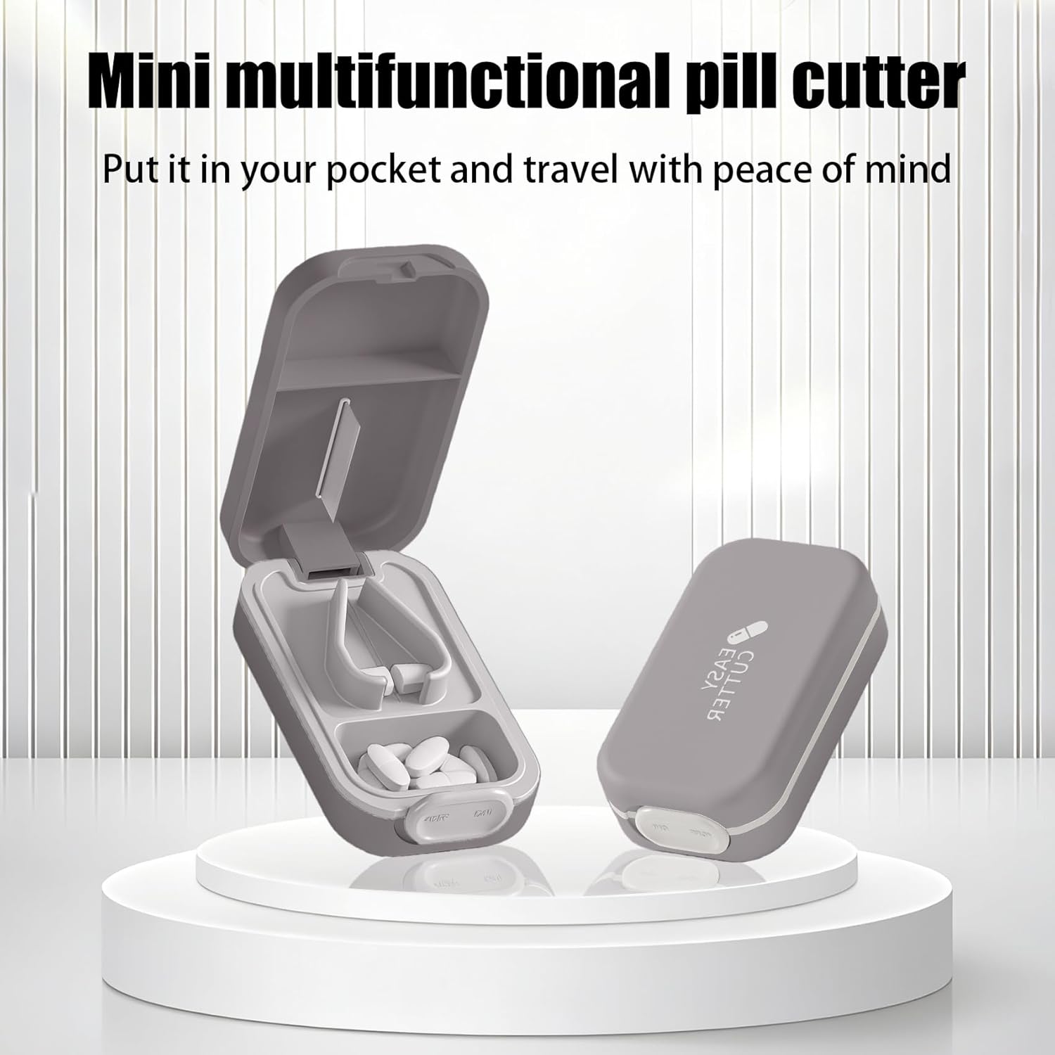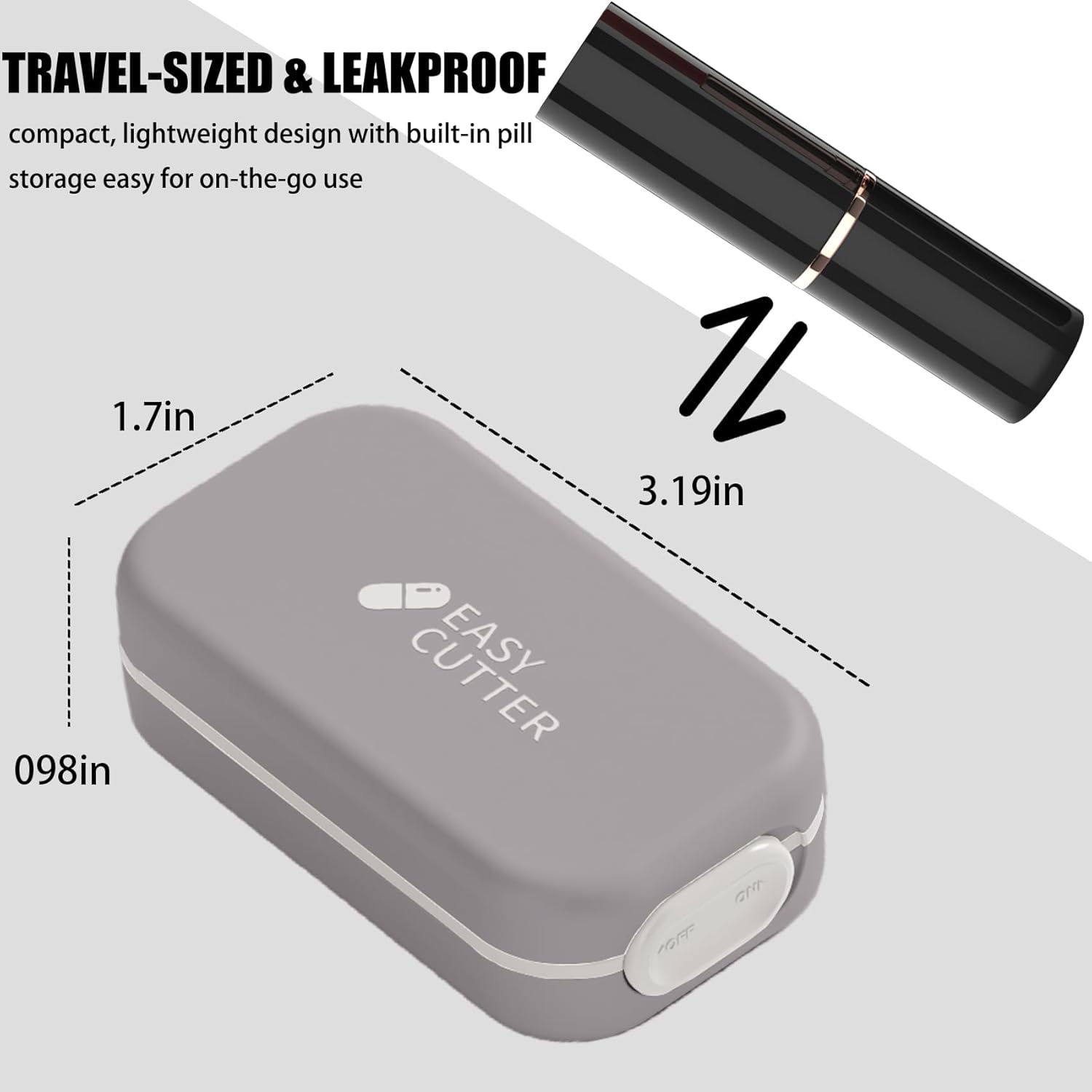 - Portable Design: This pill cutter is a small form factor for discreet storage and easy travel with