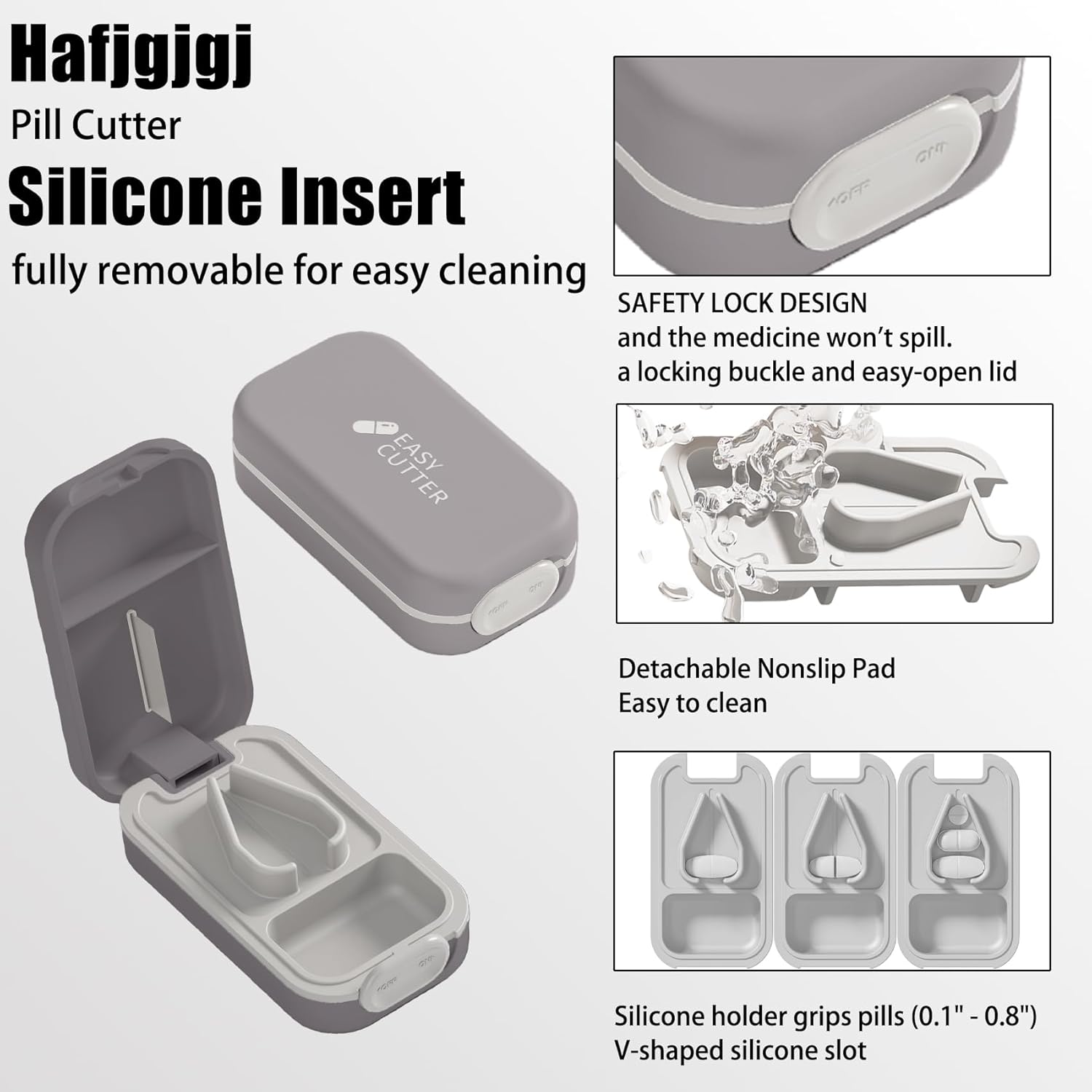 - Silicone Insert: The non-slip lining of the pill splitter provides secure pill placement and is fully removable for easy cleaning