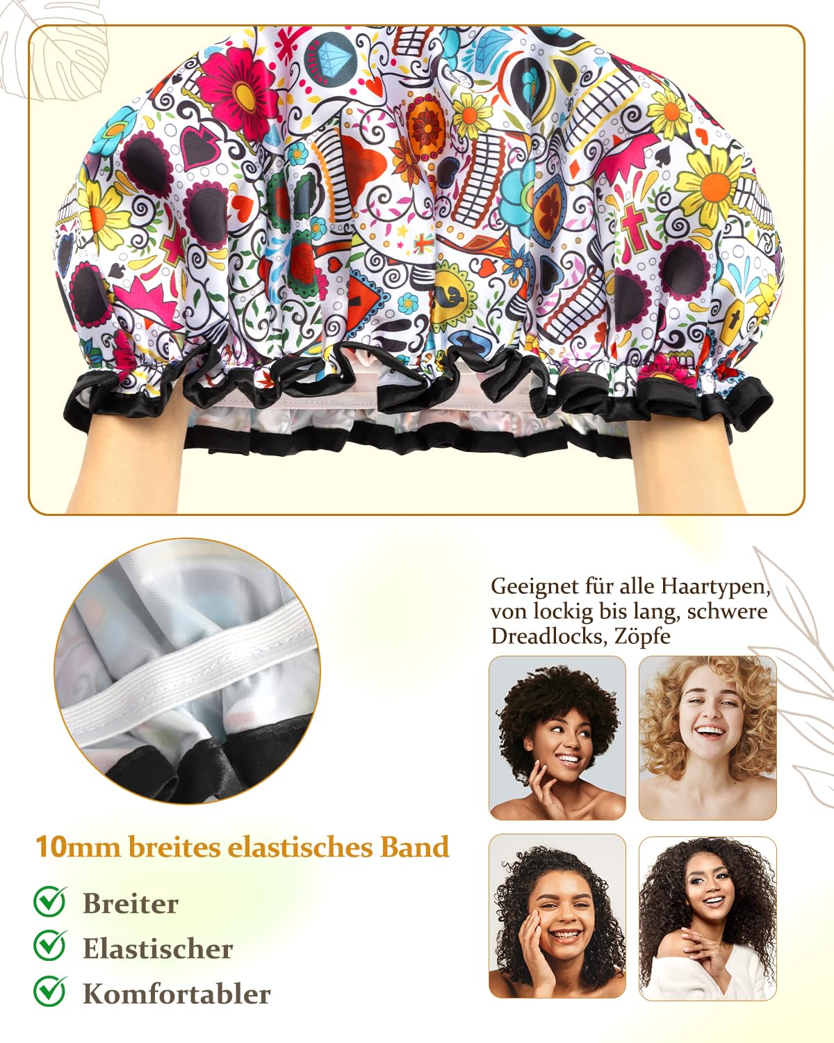 • A Splash of Fun for Showers: Add some flair to your daily routine with our vibrant sugar skull shower cap. Bursting with playful, colorful designs, it’s here to bring a little joy to every wash. Keep your hair dry while showing off your personality—because who says a shower cap can’t be fun? Go ahead, give your bath time a pop of character—you’ve earned it!