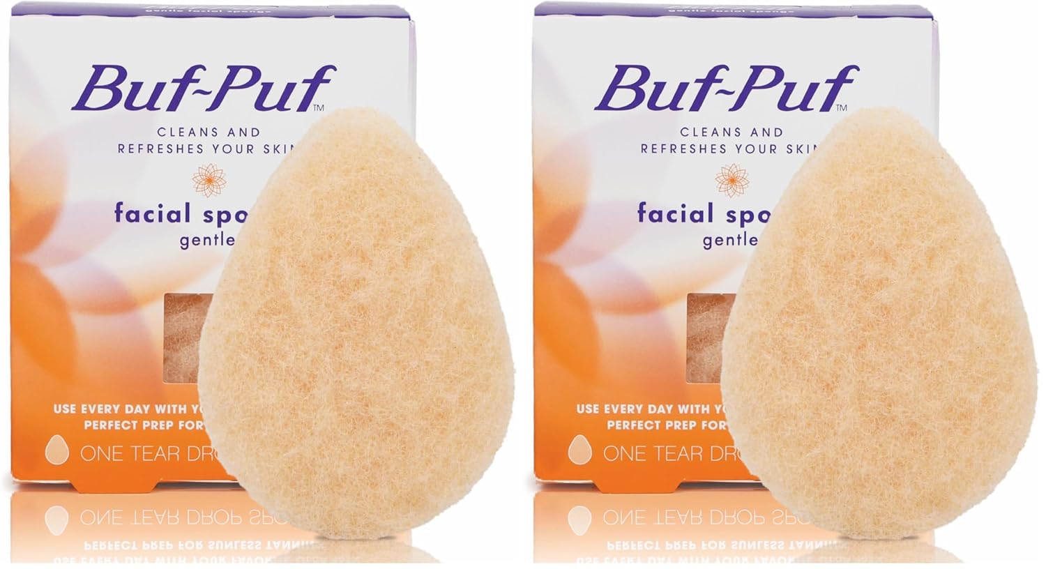 Buf-Puf Gentle Facial Sponge, Dermatologist Developed, Removes Deep Down Dirt & Makeup That Causes Breakouts and Blackheads, Reusable, Exfoliating, 1 Count (Pack of 2)