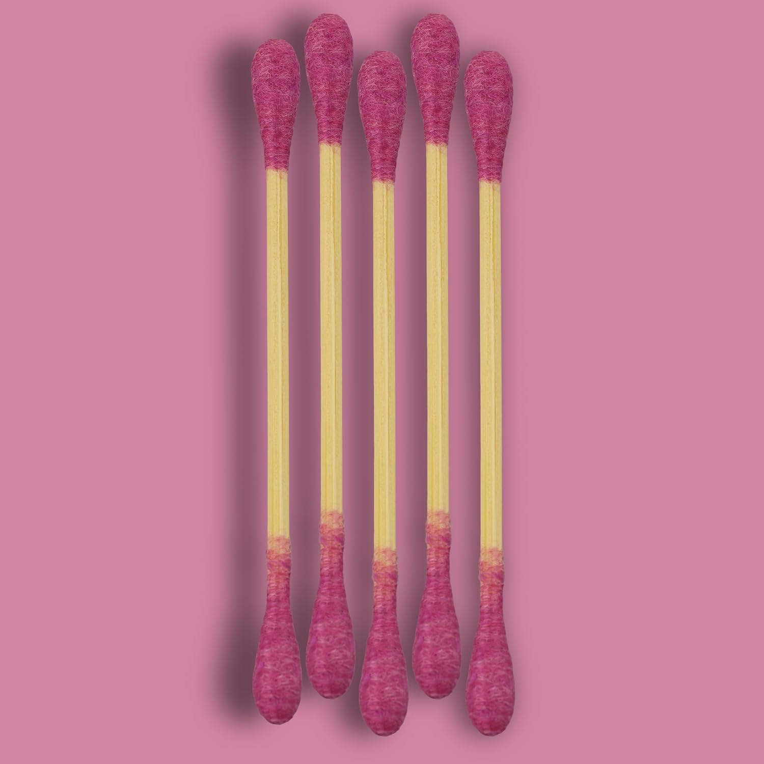RS ESSENTIAL'S BY LV: Aesthetic Cotton Swabs Sticks Ear Swabs Bamboo swabs 200 Count Cotton Buds In 5 Colorful Colors (Hot Pink)