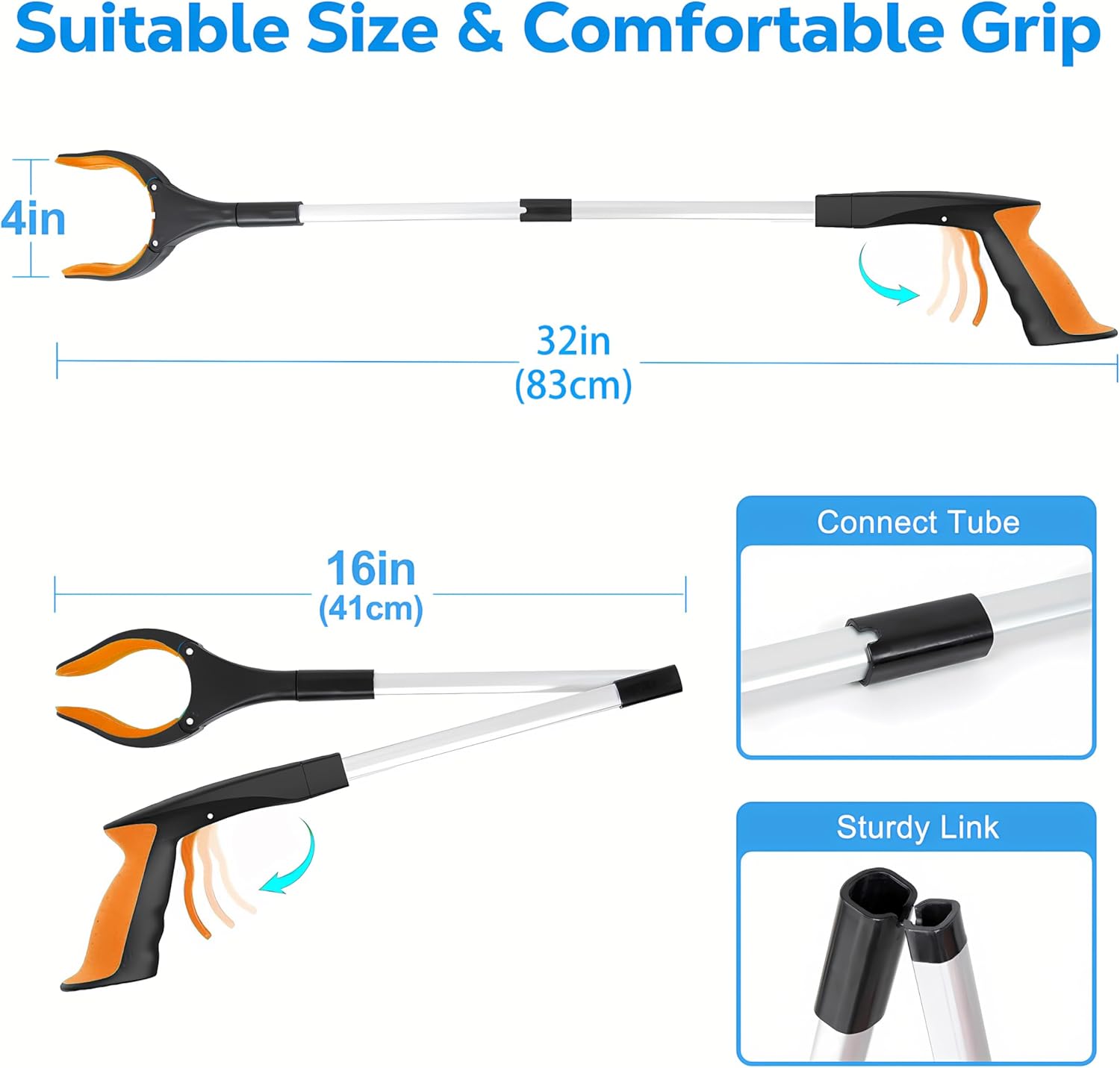 Grabber Reacher Tool - 32” Extra Long Foldable Gripper and Reaching Tool - Heavy Duty Pick Up Stick Grabbers for Seniors, Trash, Surgery Recovery Must Haves Gifts (Orange*2pc)