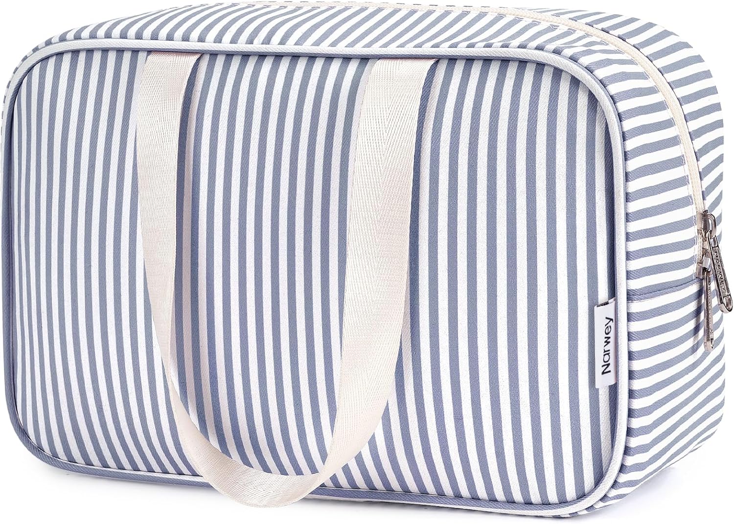 Full Size Toiletry Bag Women Large Cosmetic Bag Travel Makeup Bag Organizer Medicine Bag for Toiletries Essentials Accessories (Greyish Blue Stripe, Large)